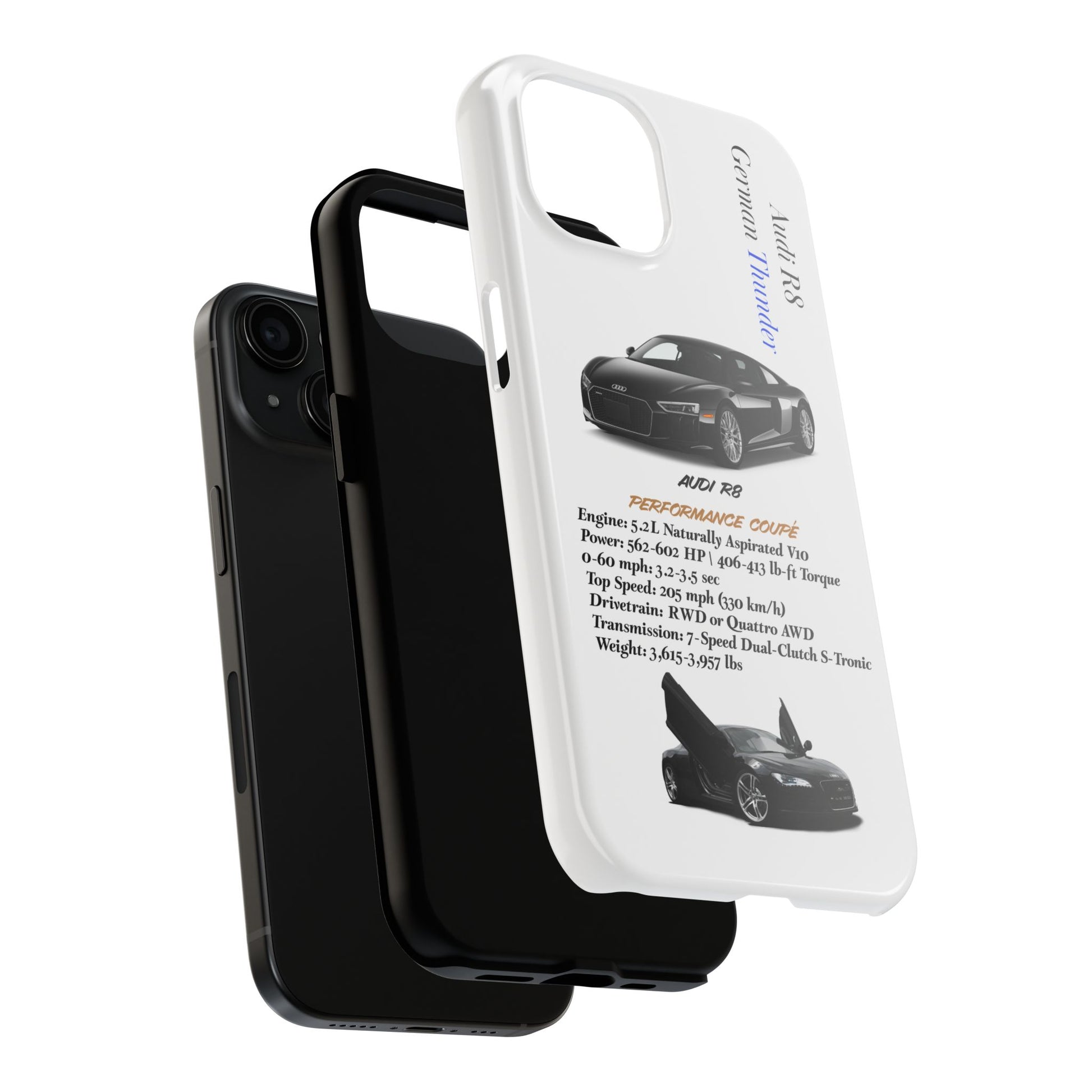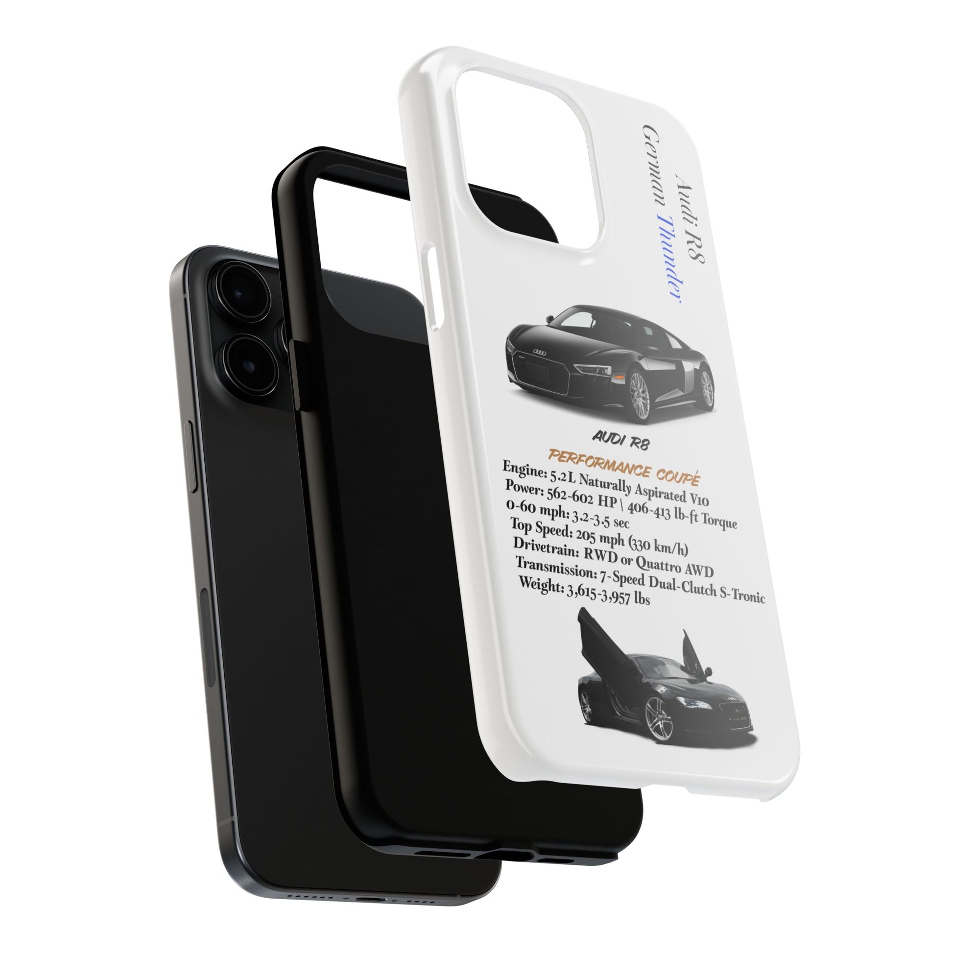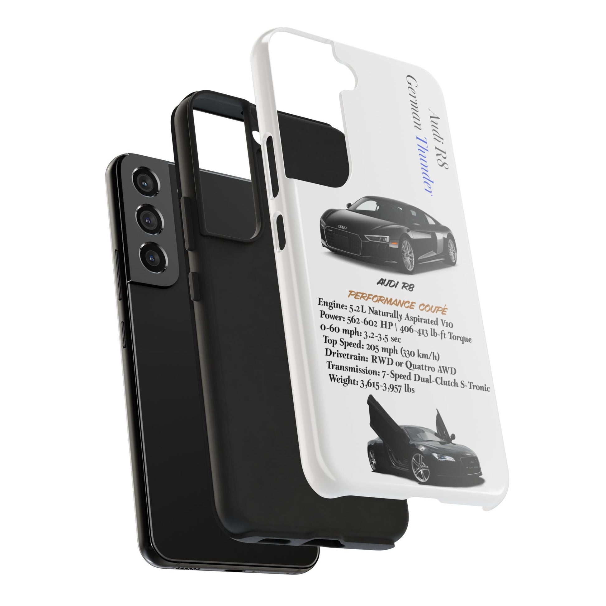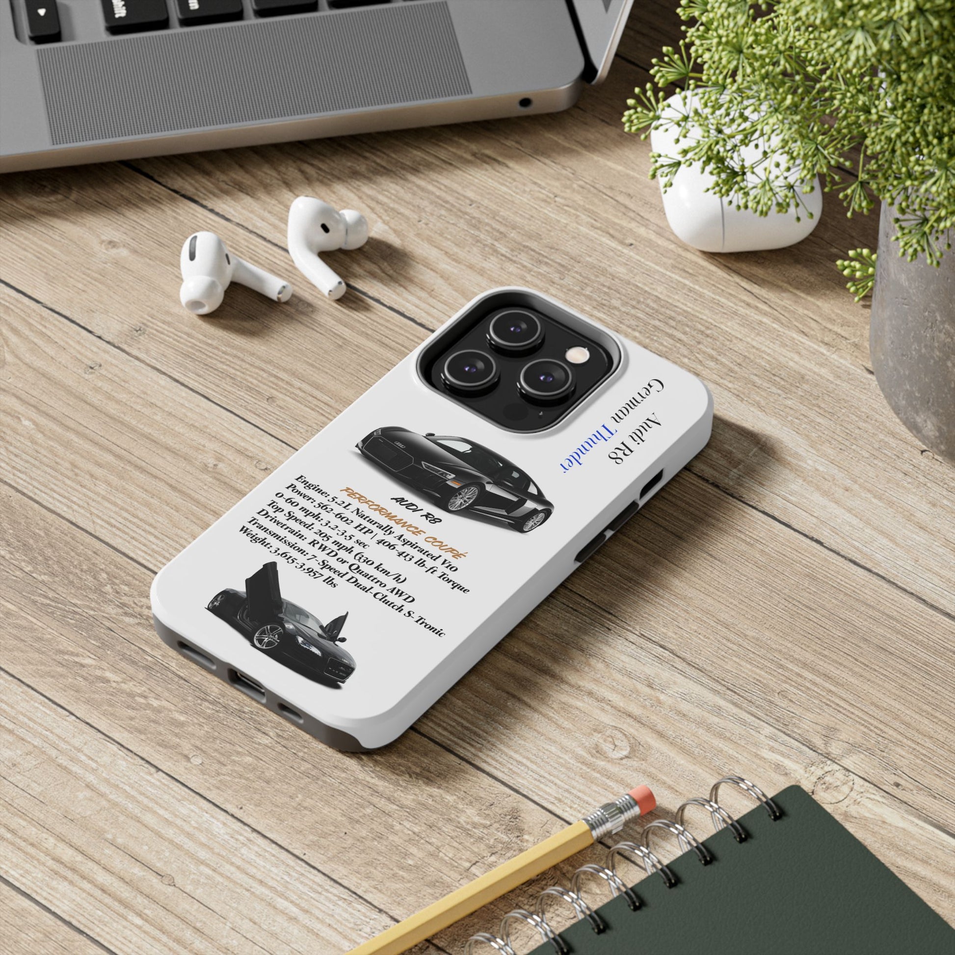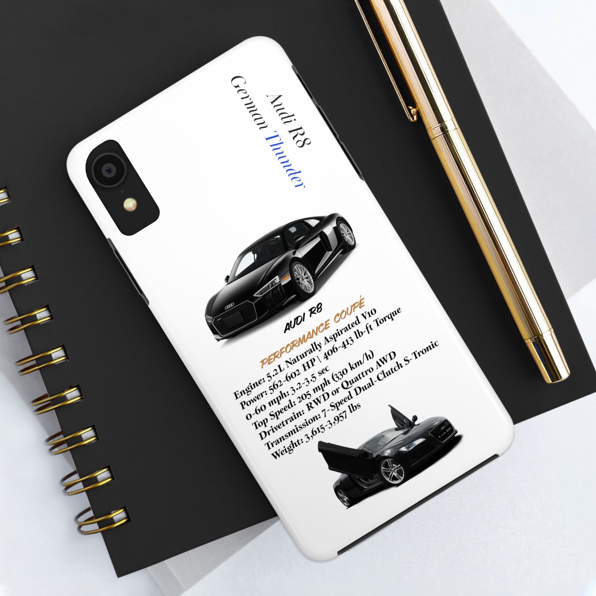 Experience the power and precision of the Audi R8 with this V10 Symphony Edition phone case. Designed for supercar enthusiasts and motorsport fans, this case celebrates the high-revving 5.2L V10 engine, quattro AWD dominance, and track-ready performance of Audi's flagship supercar. Perfect for those who appreciate high-performance vehicles and want to showcase their love for Audi.