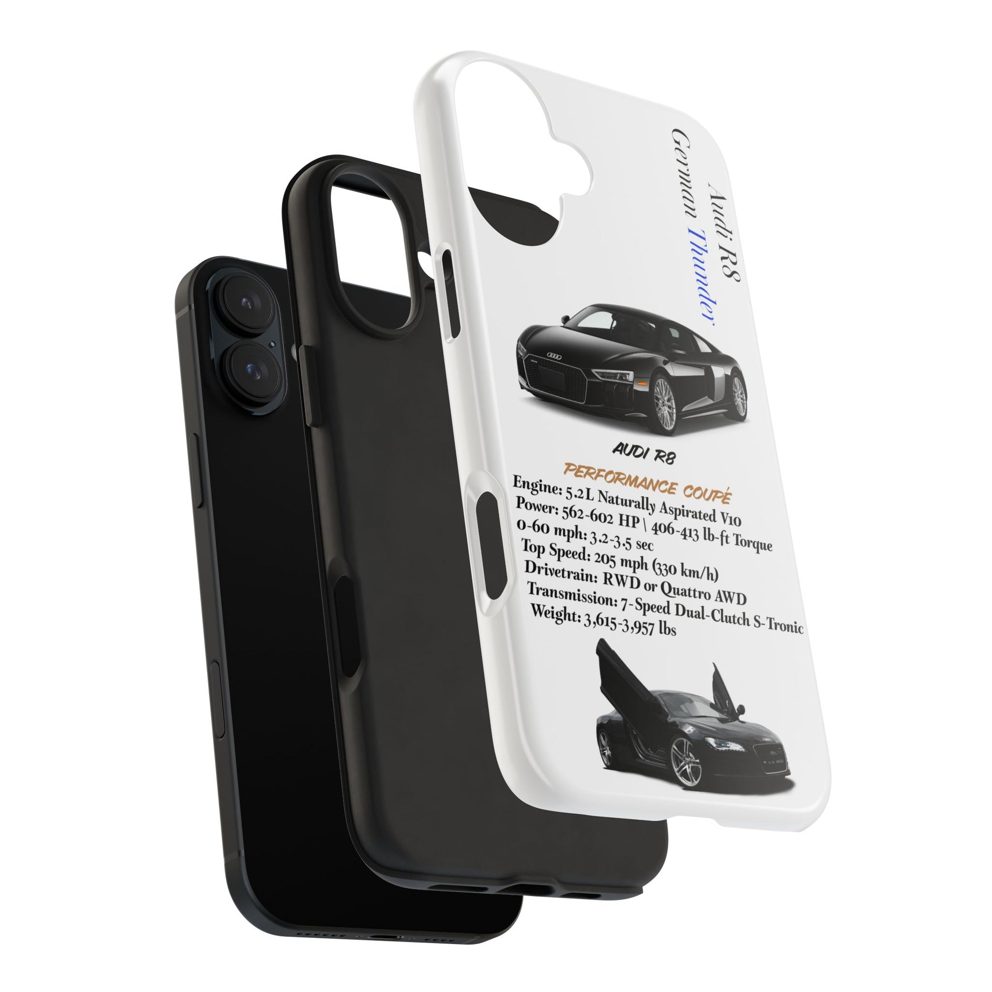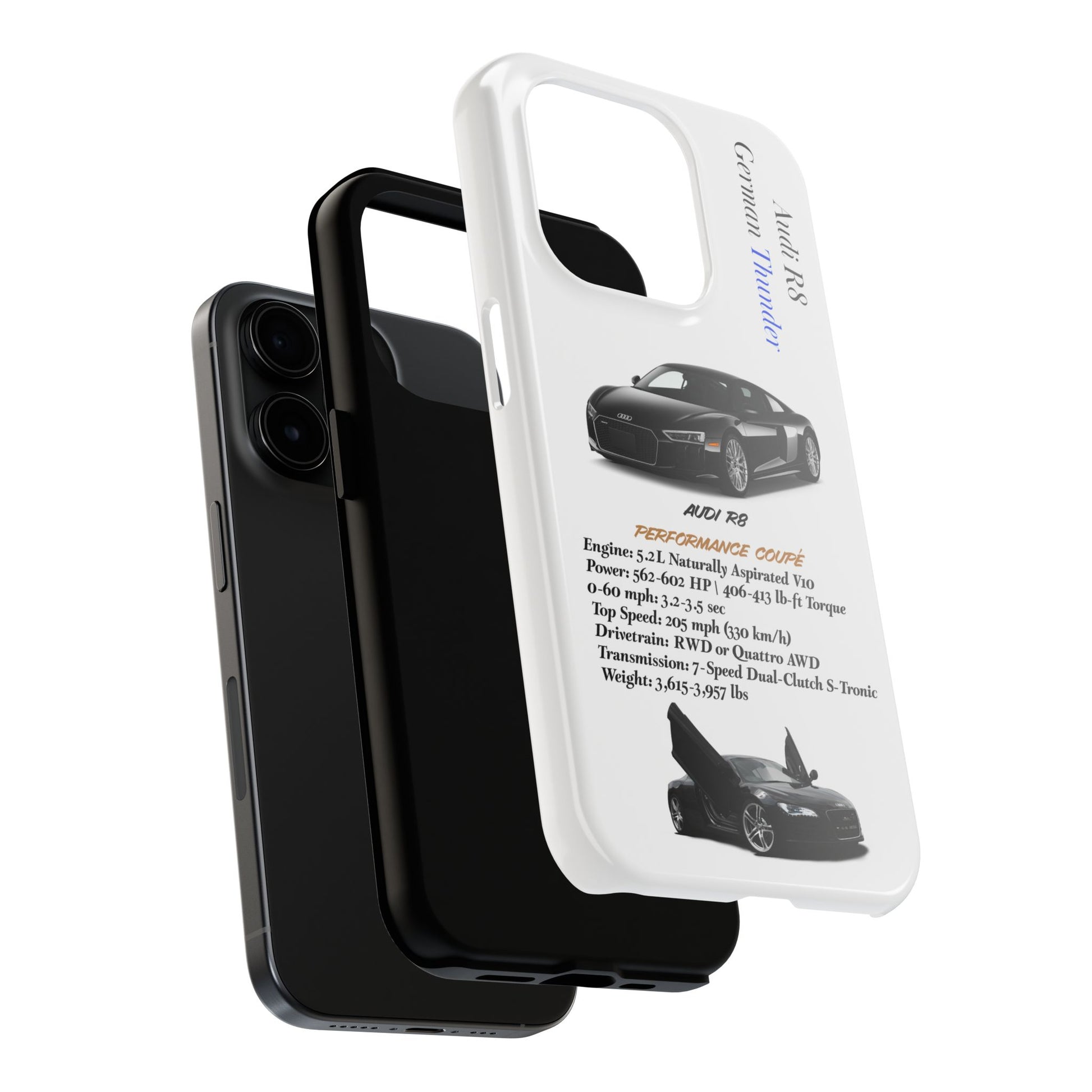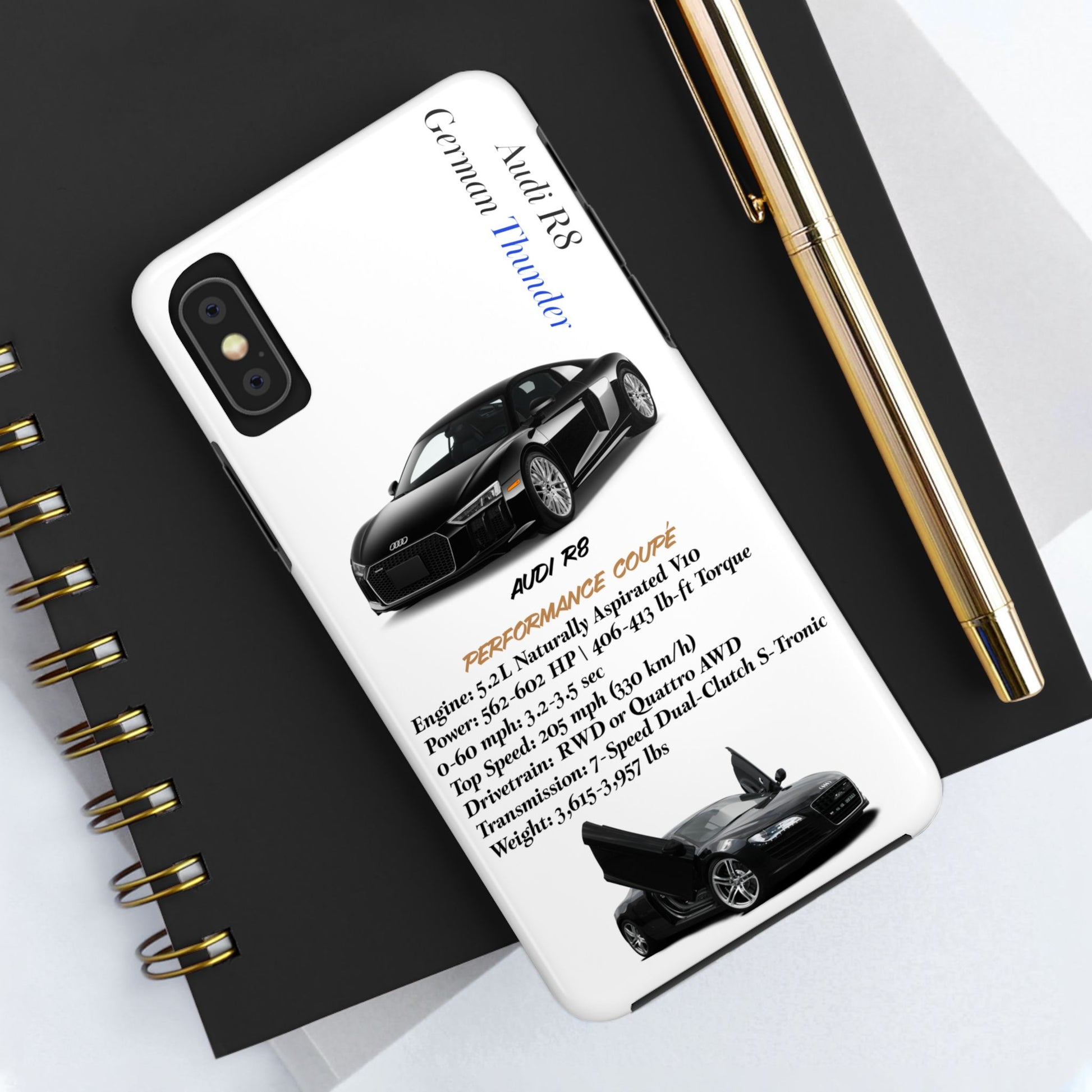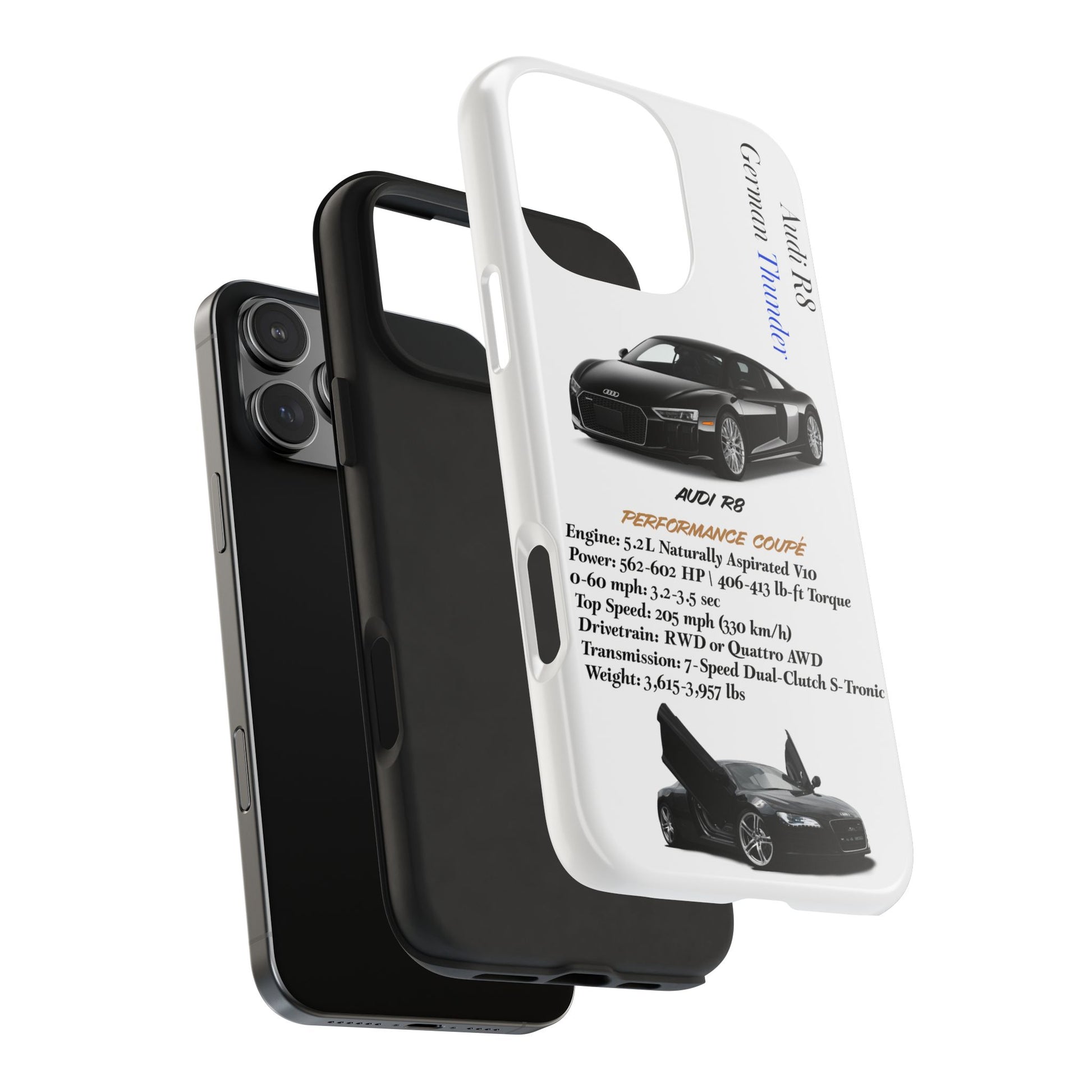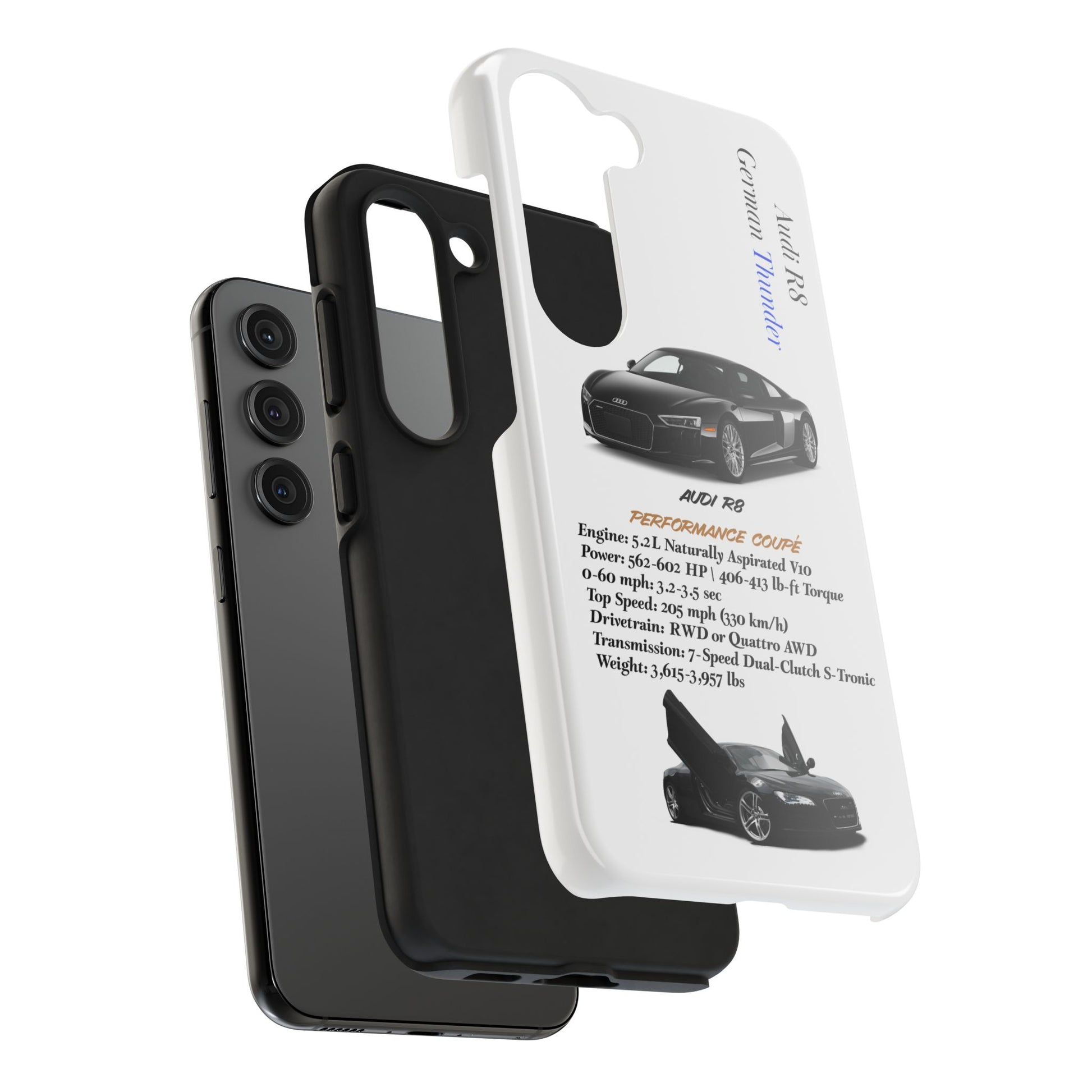 Experience the power and precision of the Audi R8 with this V10 Symphony Edition phone case. Designed for supercar enthusiasts and motorsport fans, this case celebrates the high-revving 5.2L V10 engine, quattro AWD dominance, and track-ready performance of Audi's flagship supercar. Perfect for those who appreciate high-performance vehicles and want to showcase their love for Audi.