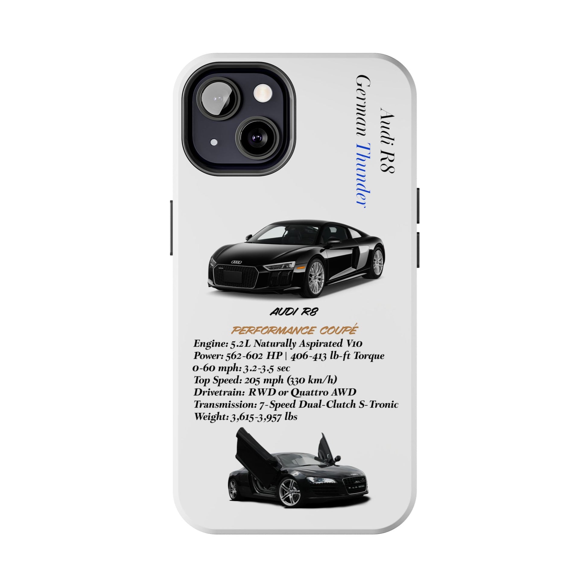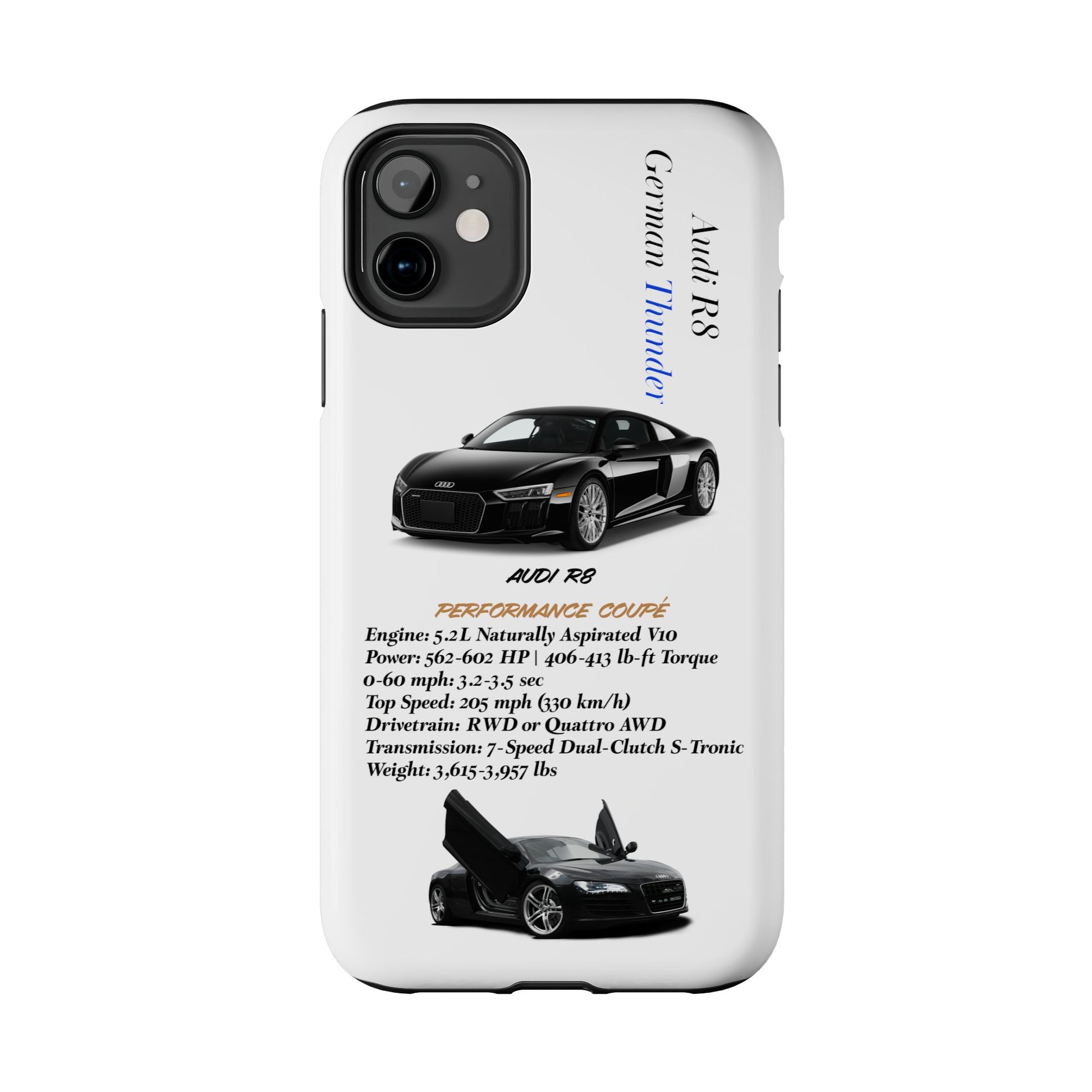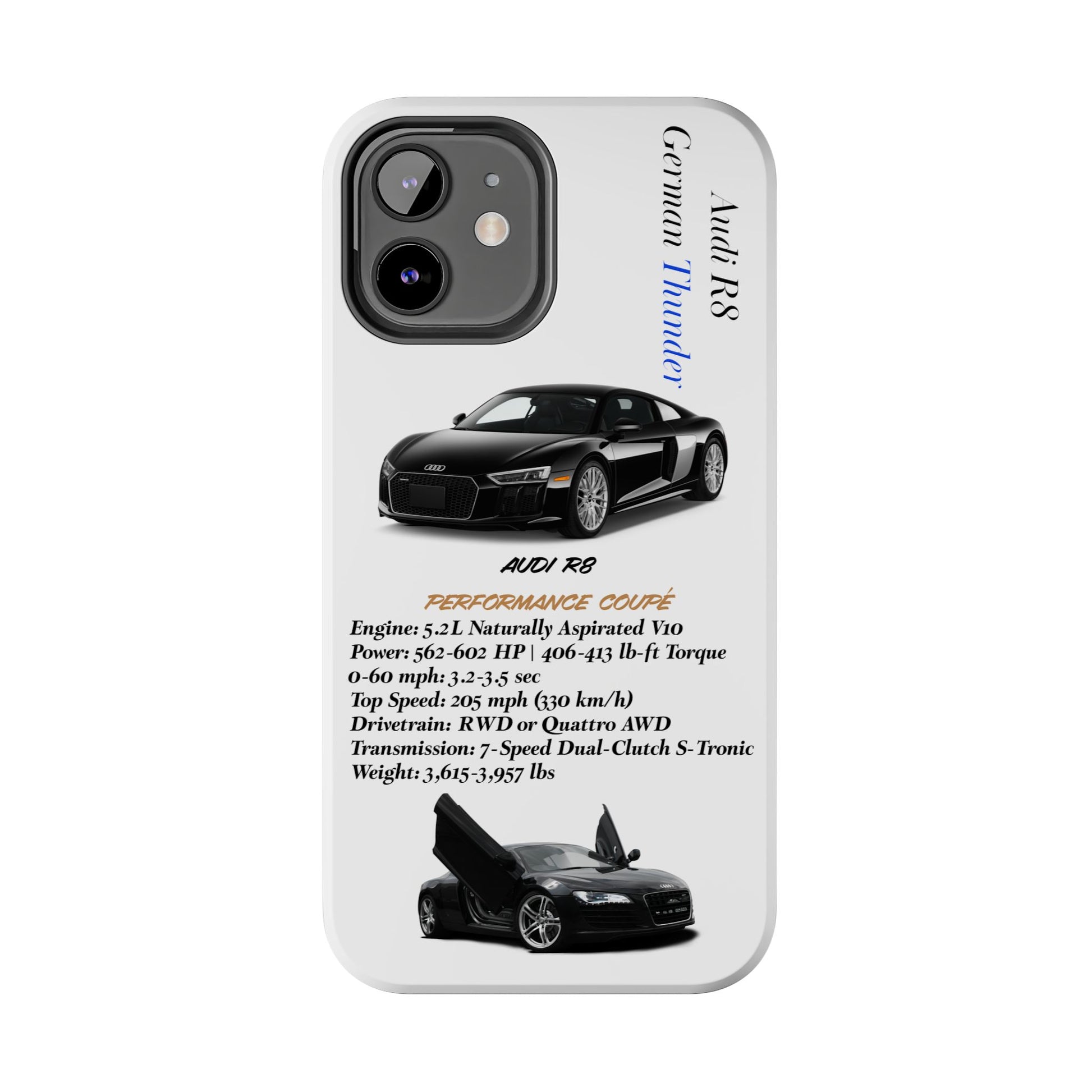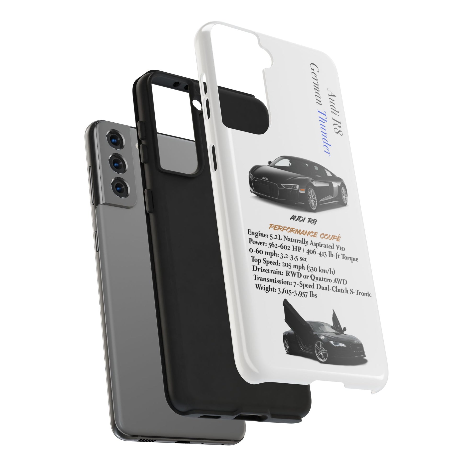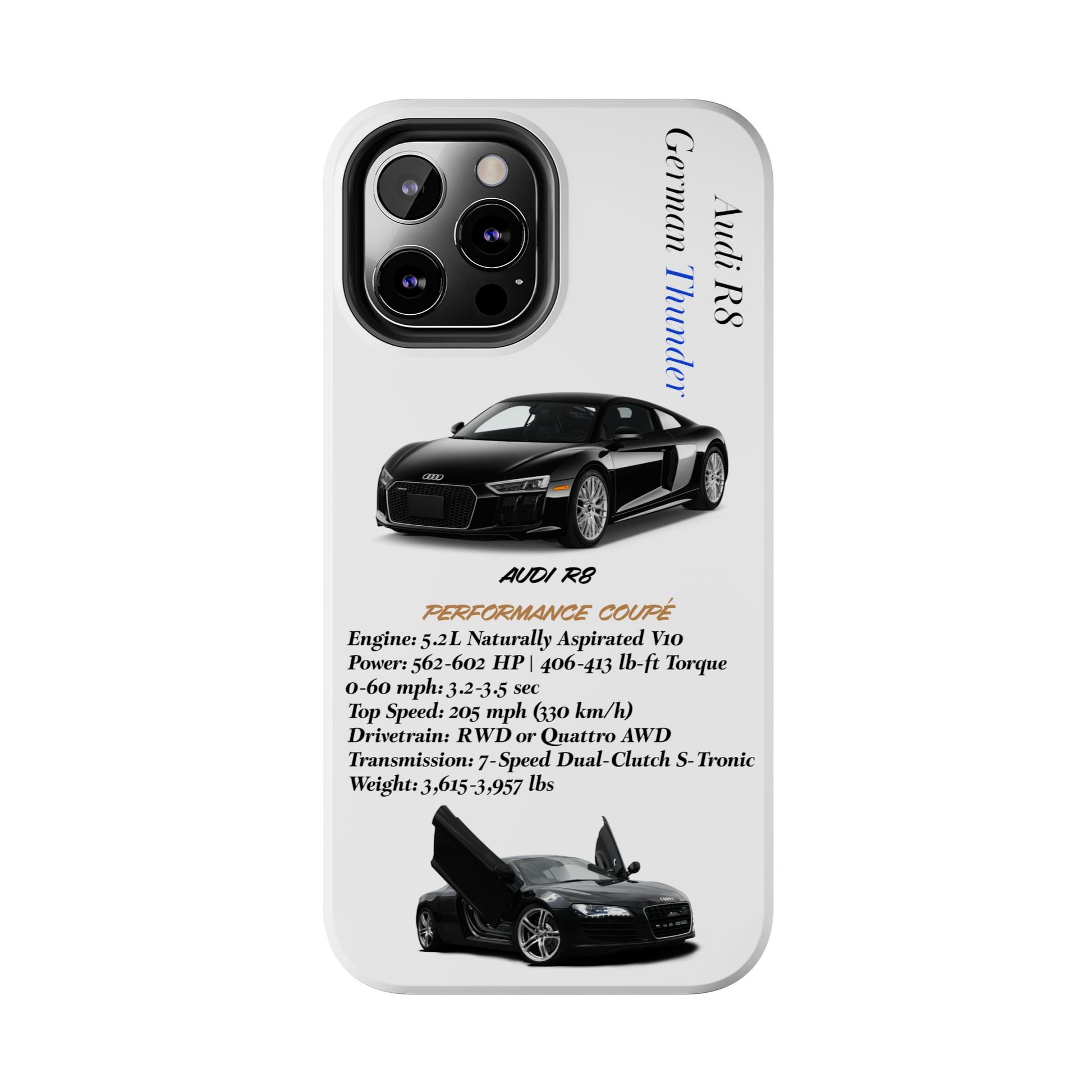 Experience the power and precision of the Audi R8 with this V10 Symphony Edition phone case. Designed for supercar enthusiasts and motorsport fans, this case celebrates the high-revving 5.2L V10 engine, quattro AWD dominance, and track-ready performance of Audi's flagship supercar. Perfect for those who appreciate high-performance vehicles and want to showcase their love for Audi.