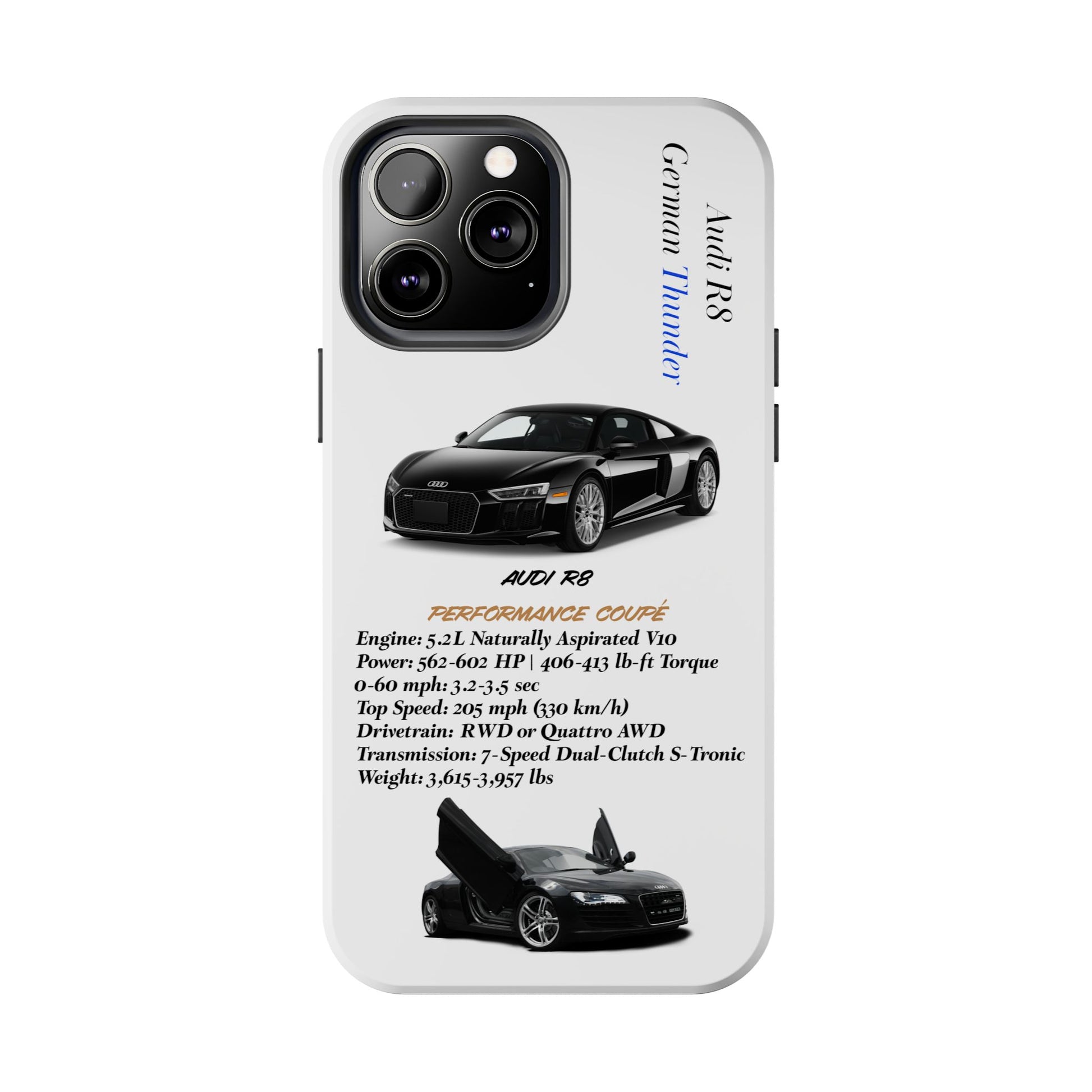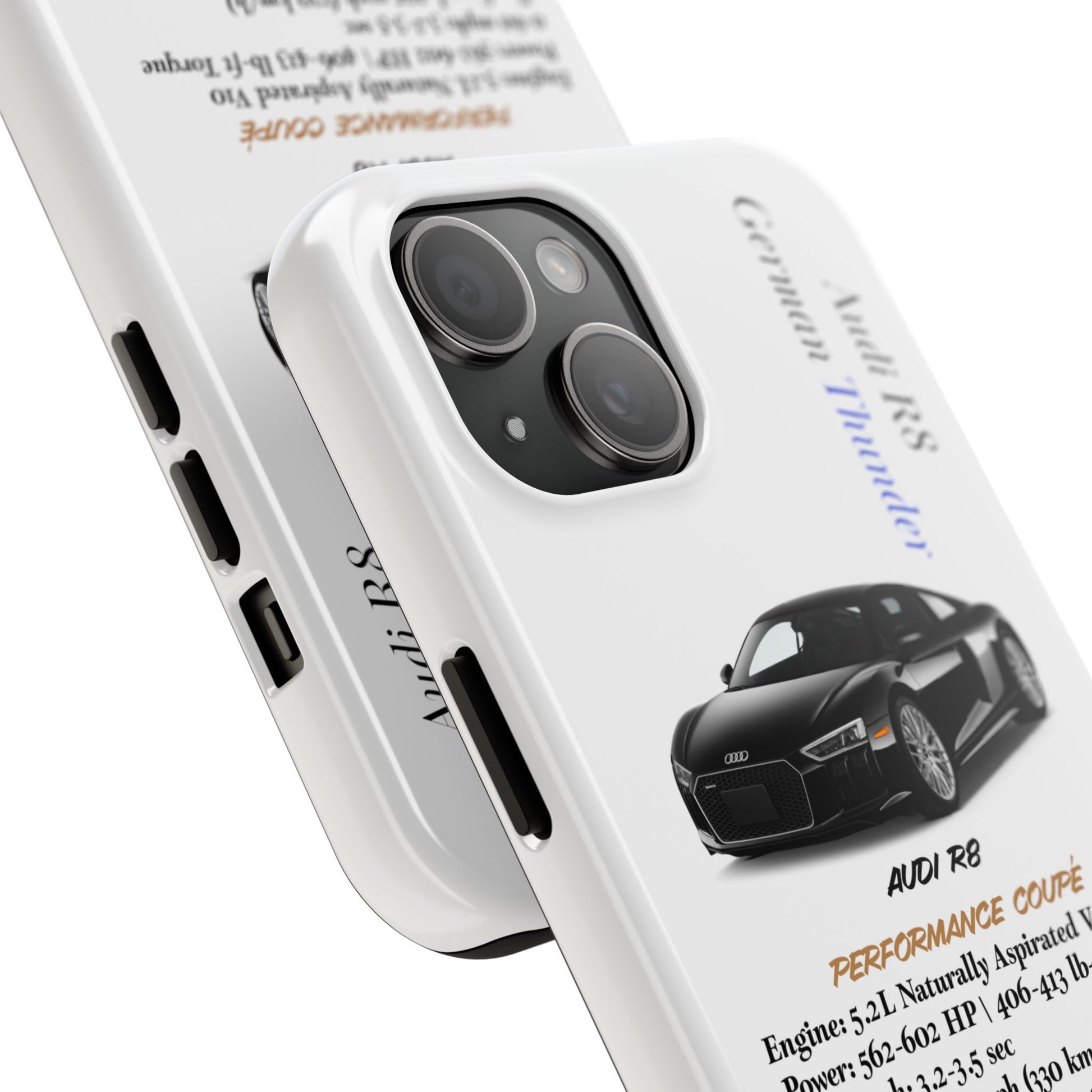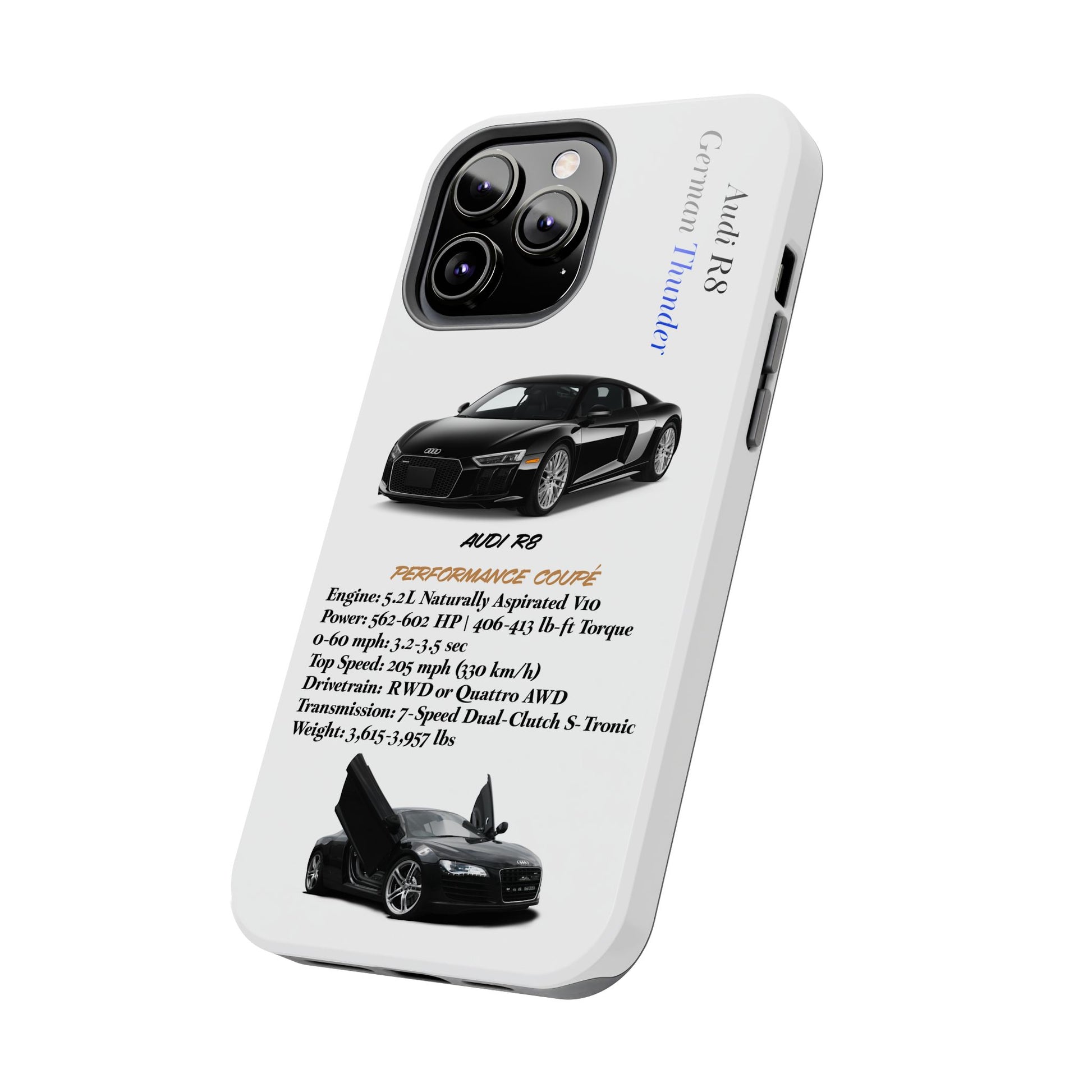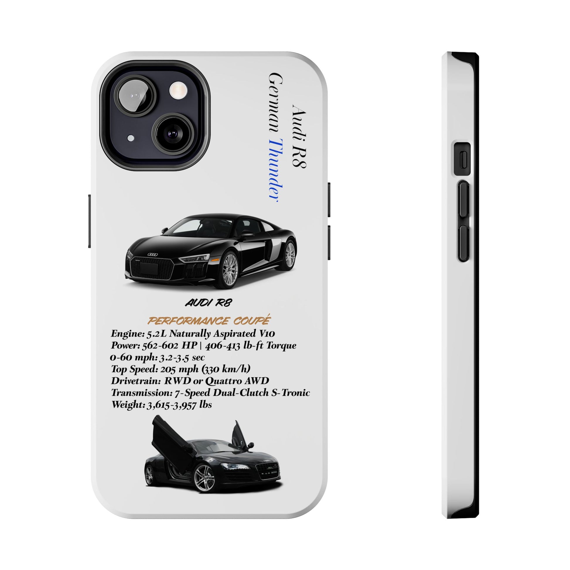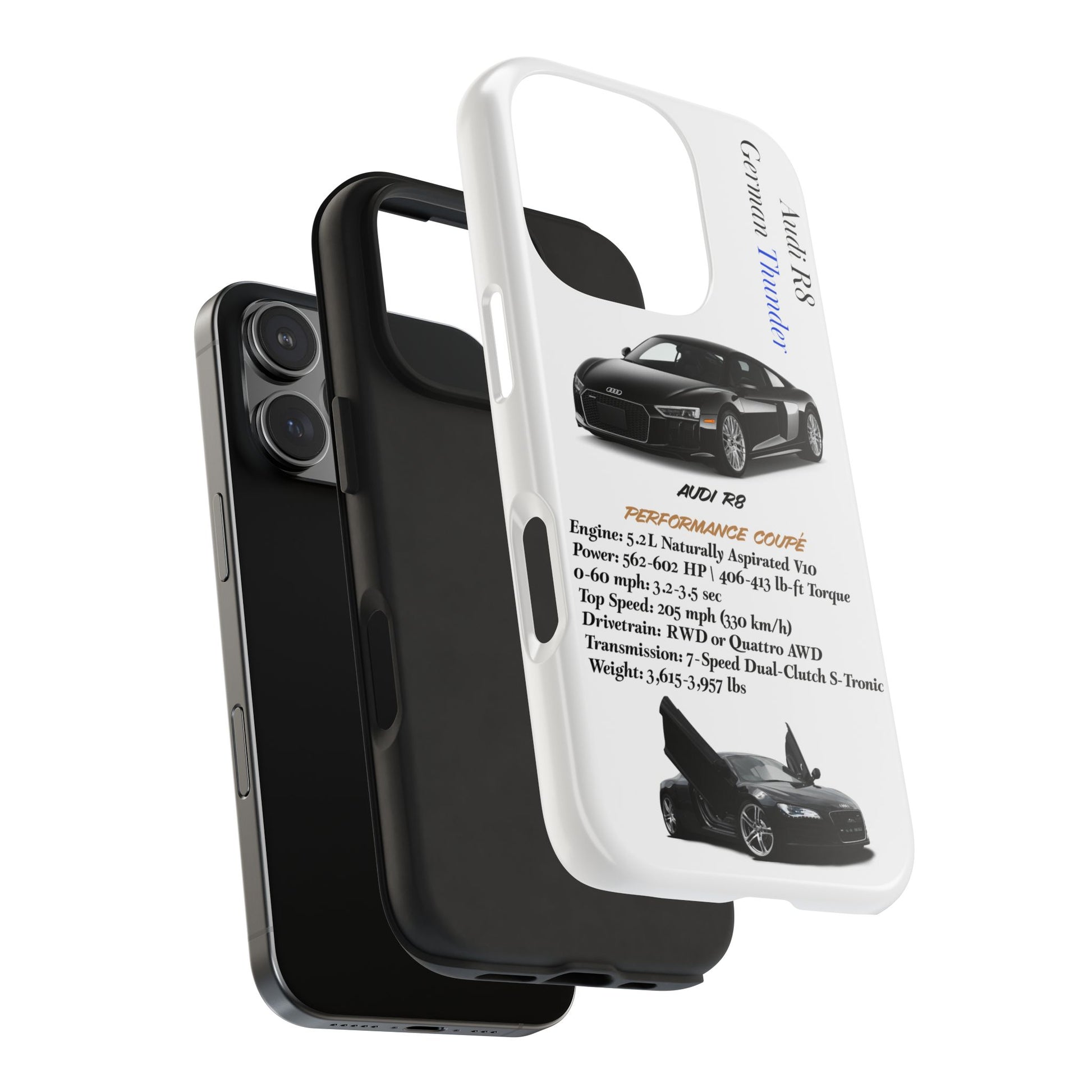 Experience the power and precision of the Audi R8 with this V10 Symphony Edition phone case. Designed for supercar enthusiasts and motorsport fans, this case celebrates the high-revving 5.2L V10 engine, quattro AWD dominance, and track-ready performance of Audi's flagship supercar. Perfect for those who appreciate high-performance vehicles and want to showcase their love for Audi.