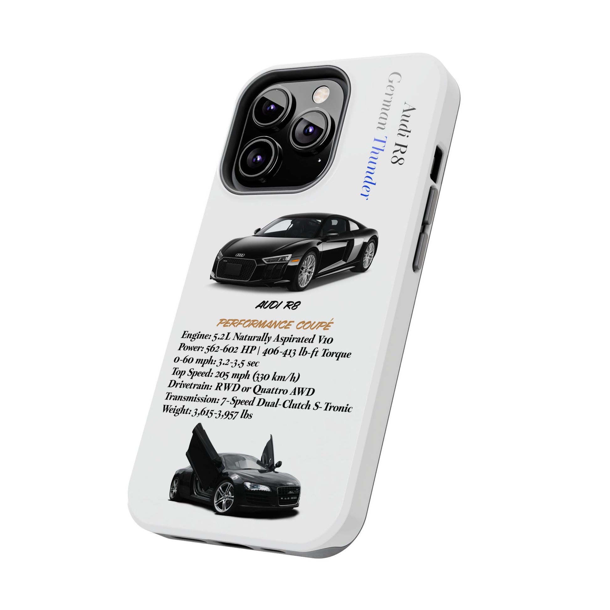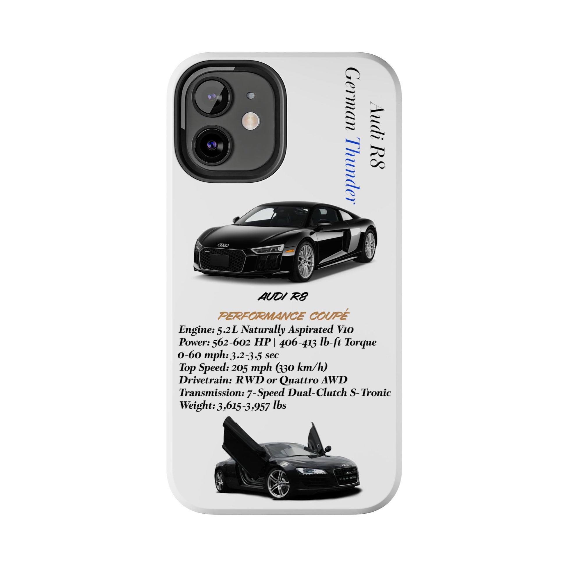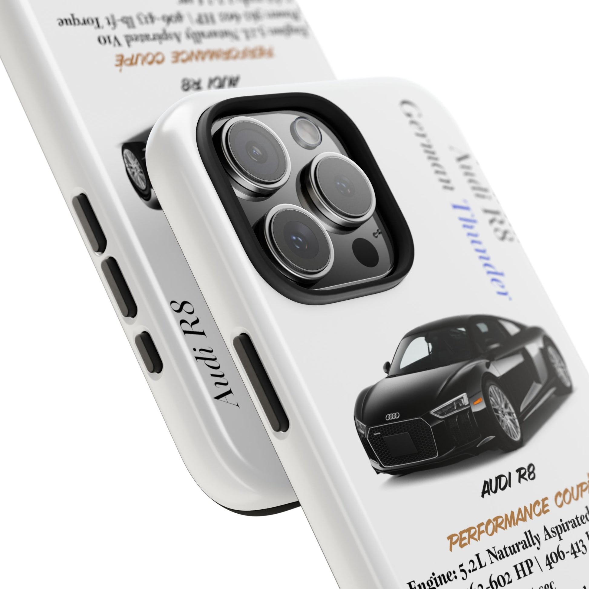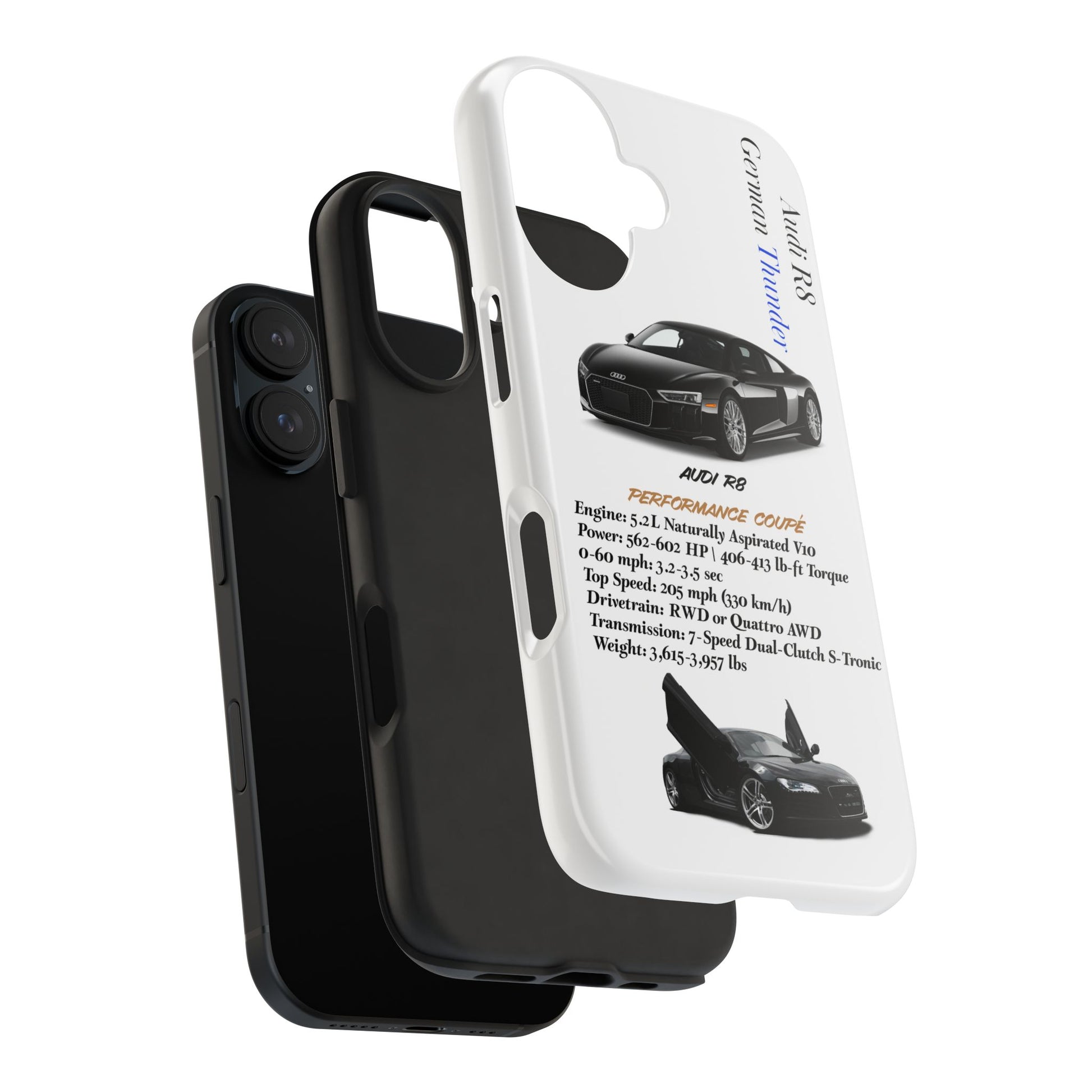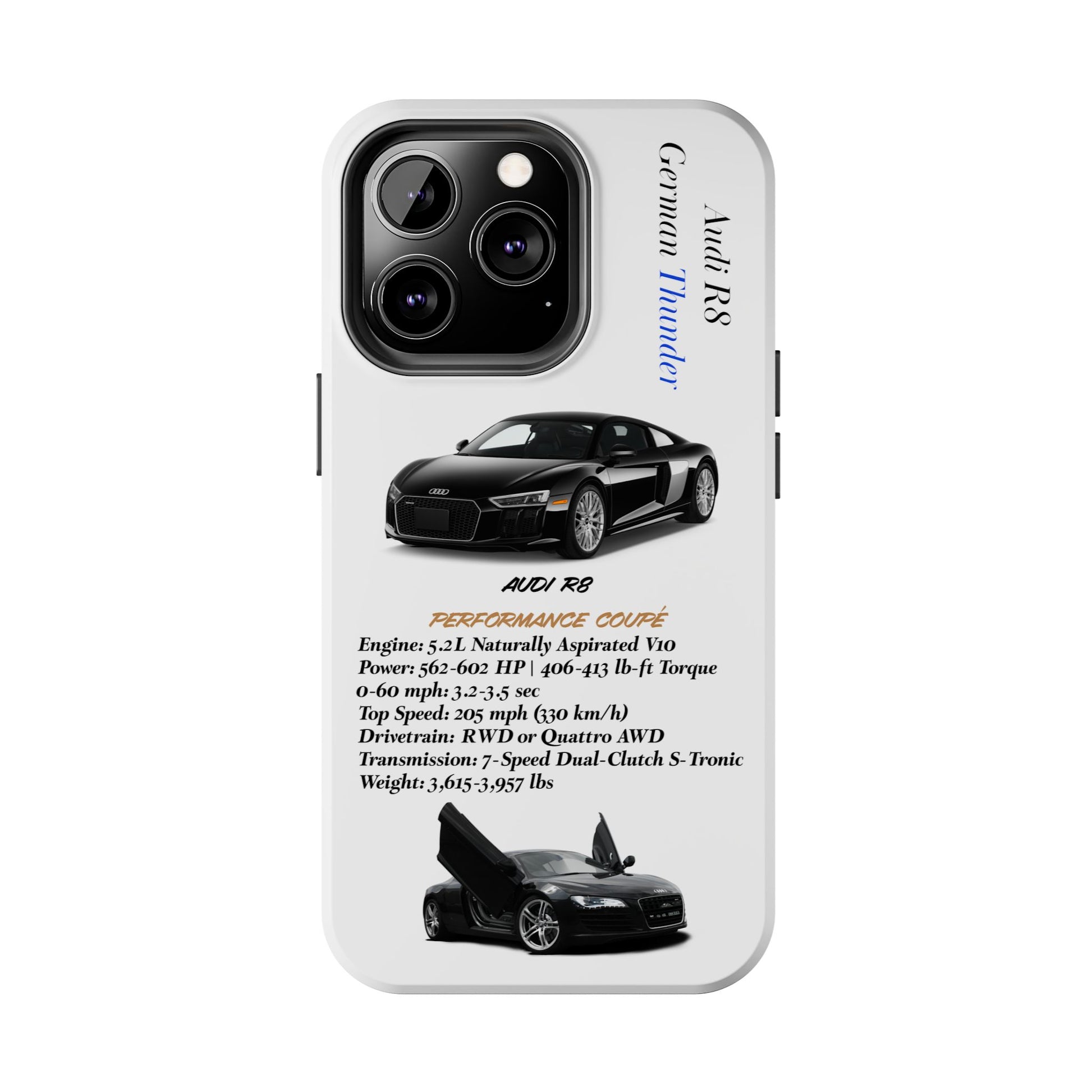 Experience the power and precision of the Audi R8 with this V10 Symphony Edition phone case. Designed for supercar enthusiasts and motorsport fans, this case celebrates the high-revving 5.2L V10 engine, quattro AWD dominance, and track-ready performance of Audi's flagship supercar. Perfect for those who appreciate high-performance vehicles and want to showcase their love for Audi.