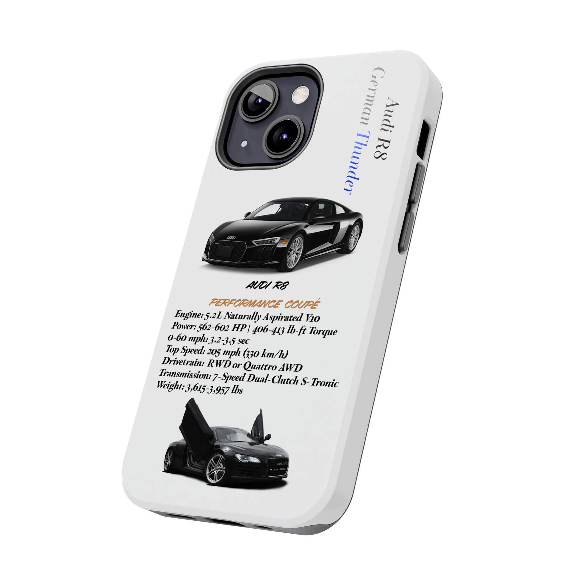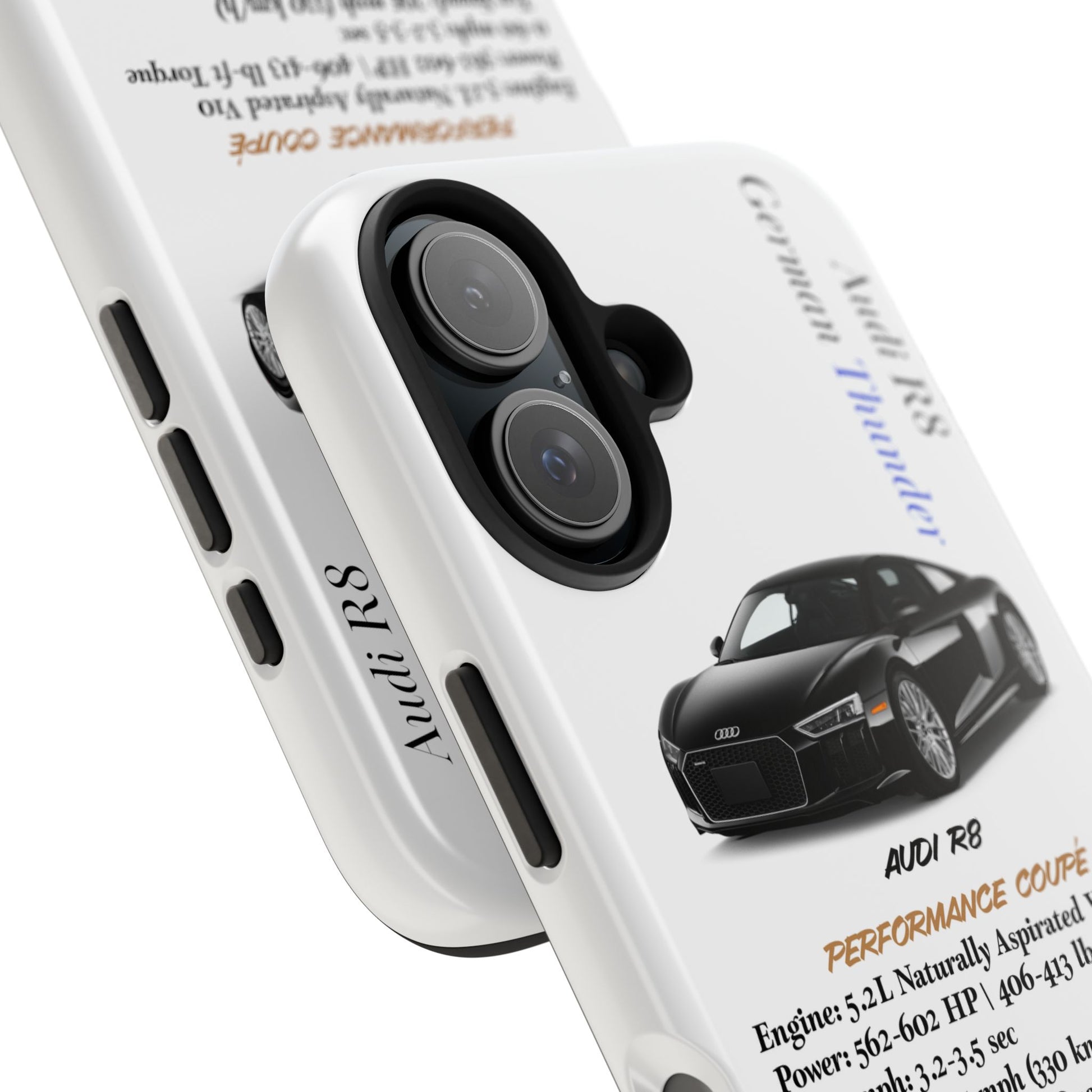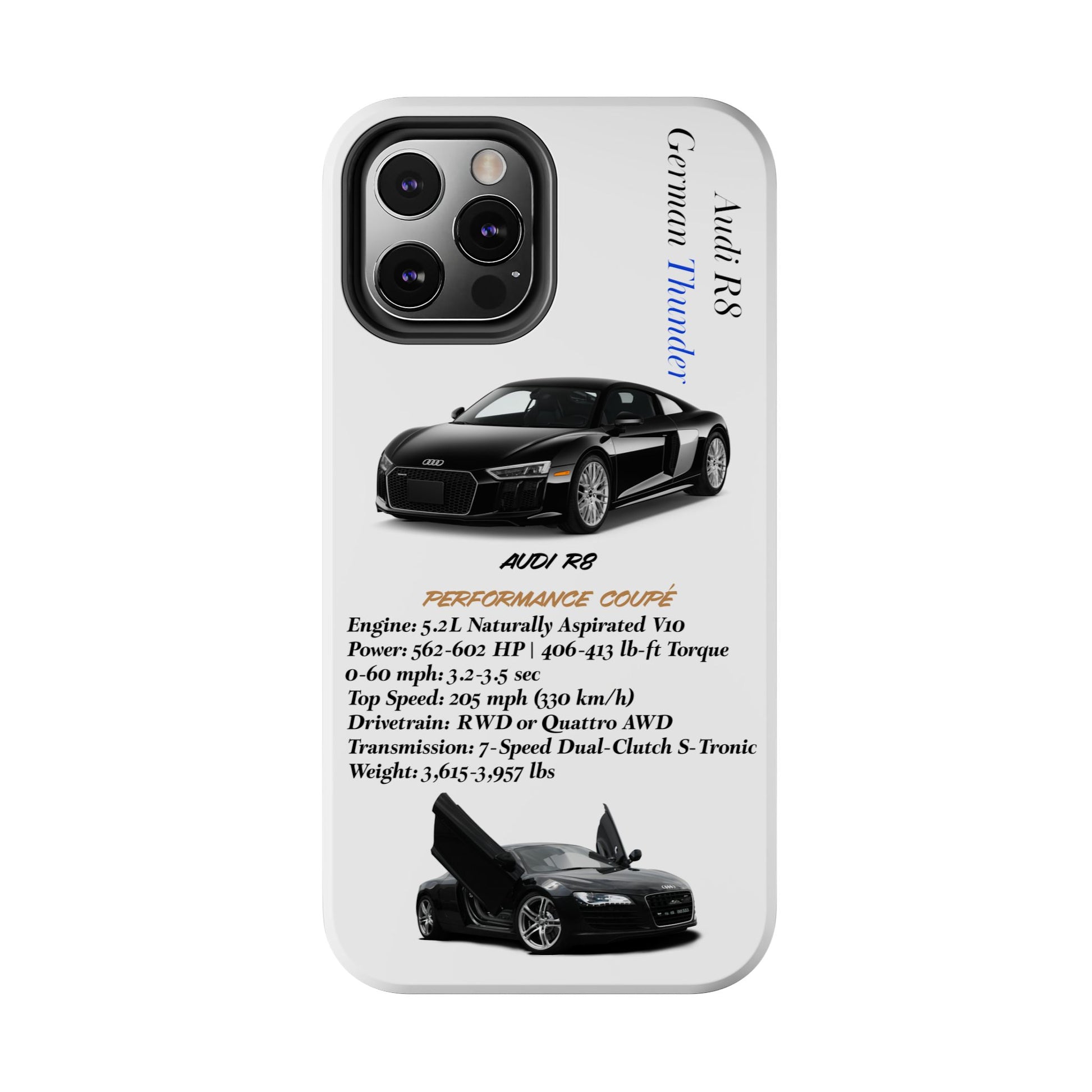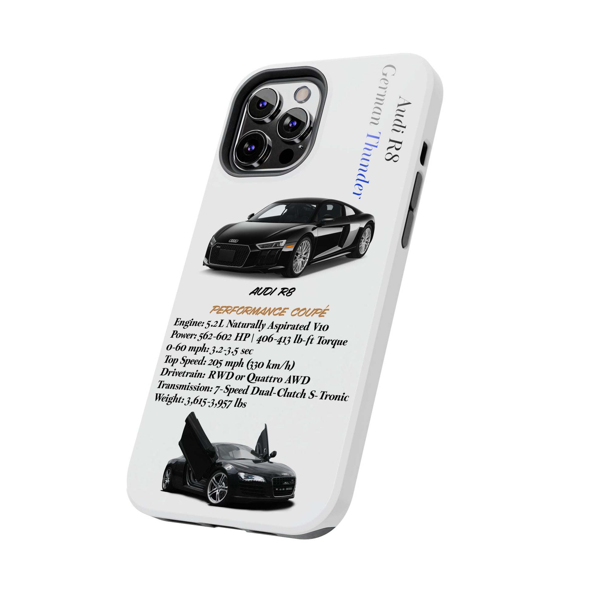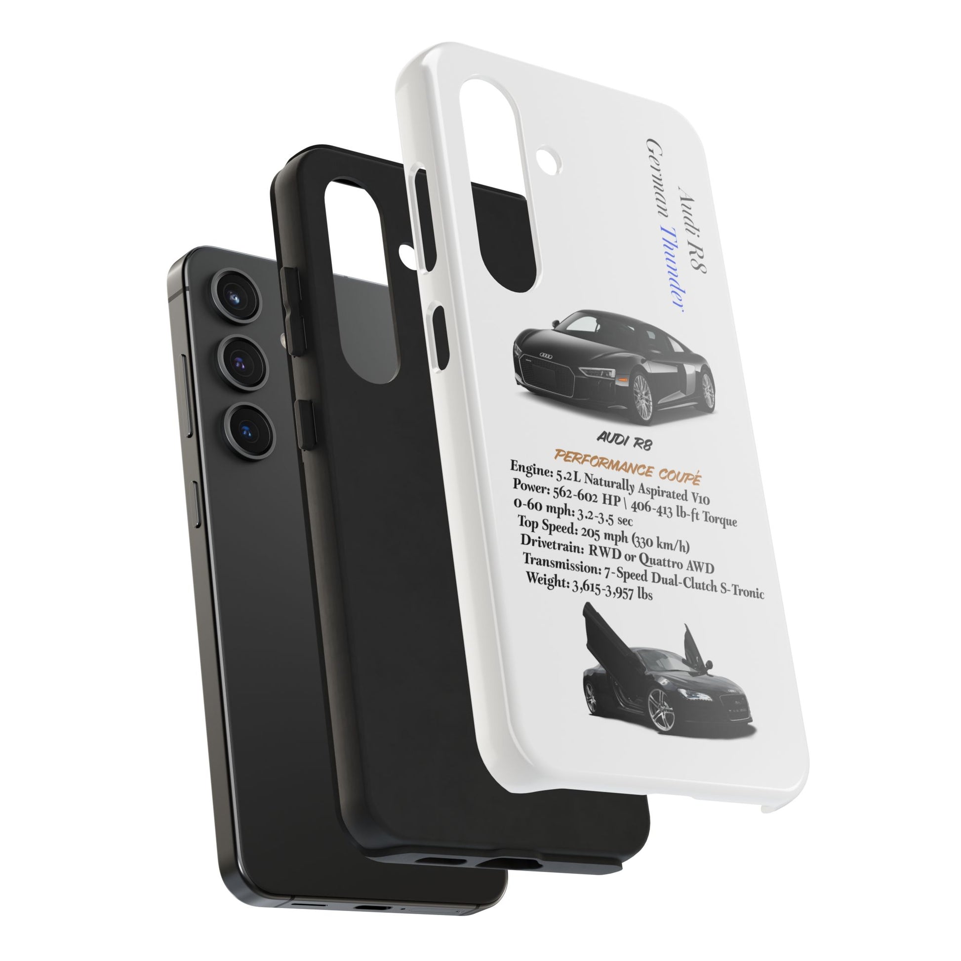Experience the power and precision of the Audi R8 with this V10 Symphony Edition phone case. Designed for supercar enthusiasts and motorsport fans, this case celebrates the high-revving 5.2L V10 engine, quattro AWD dominance, and track-ready performance of Audi's flagship supercar. Perfect for those who appreciate high-performance vehicles and want to showcase their love for Audi.