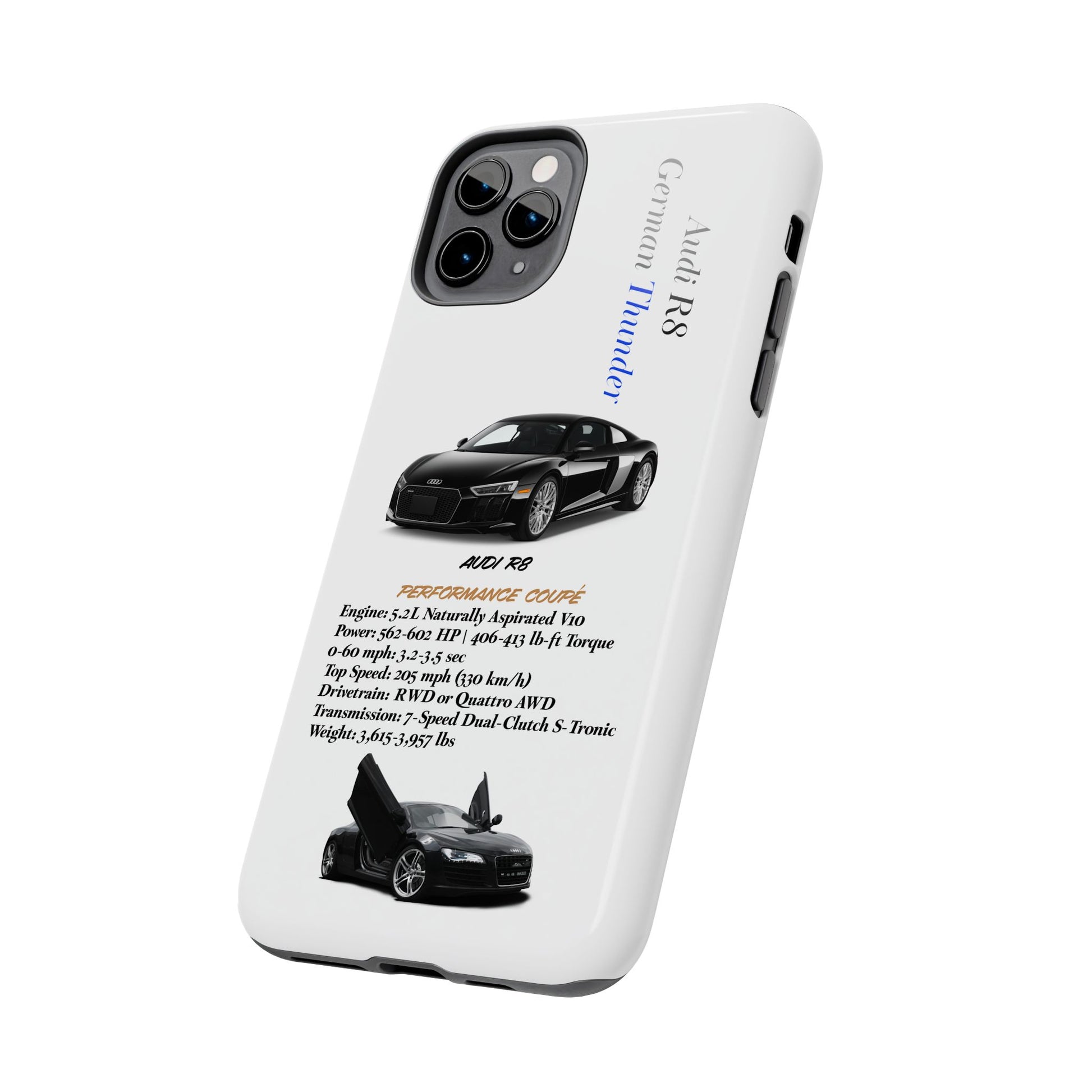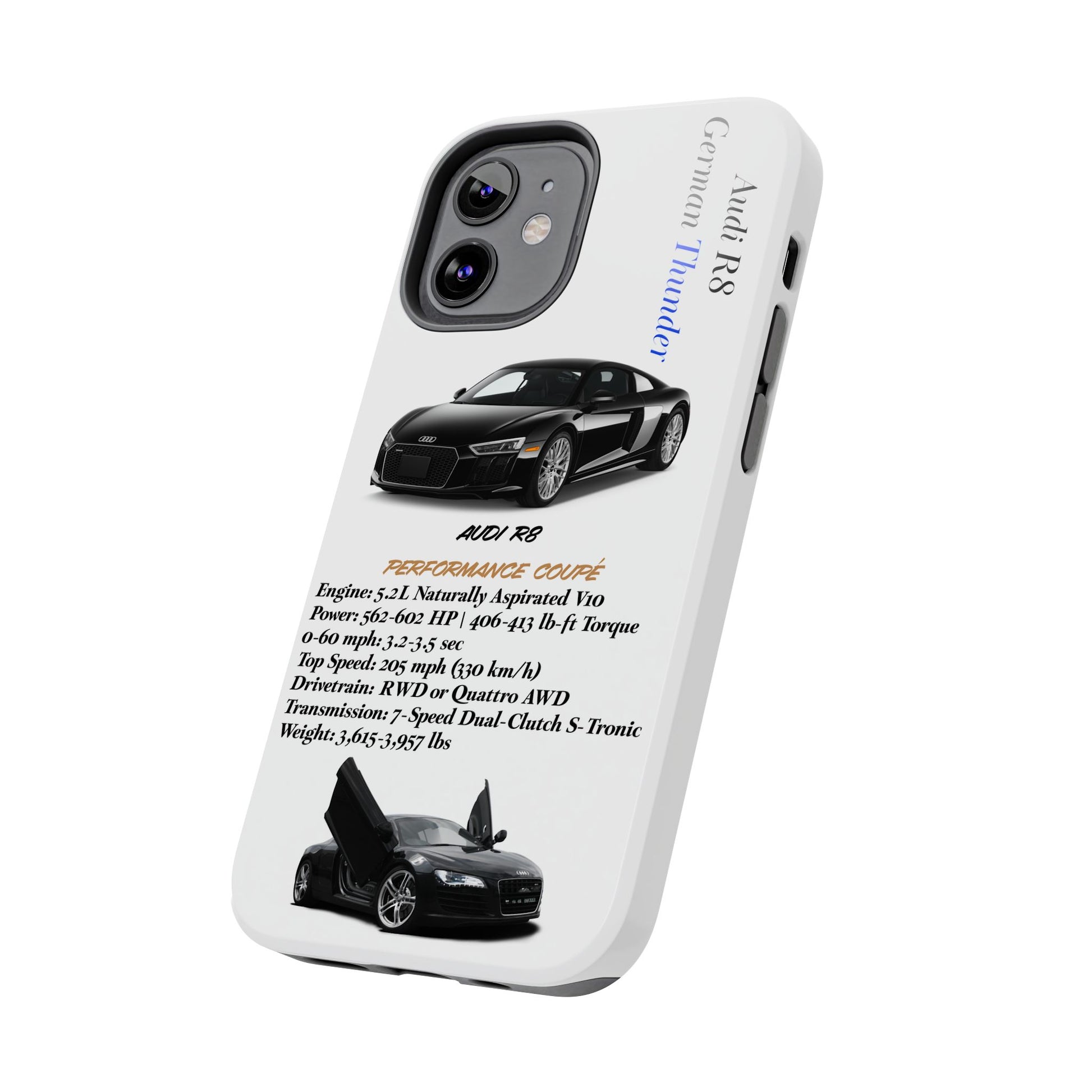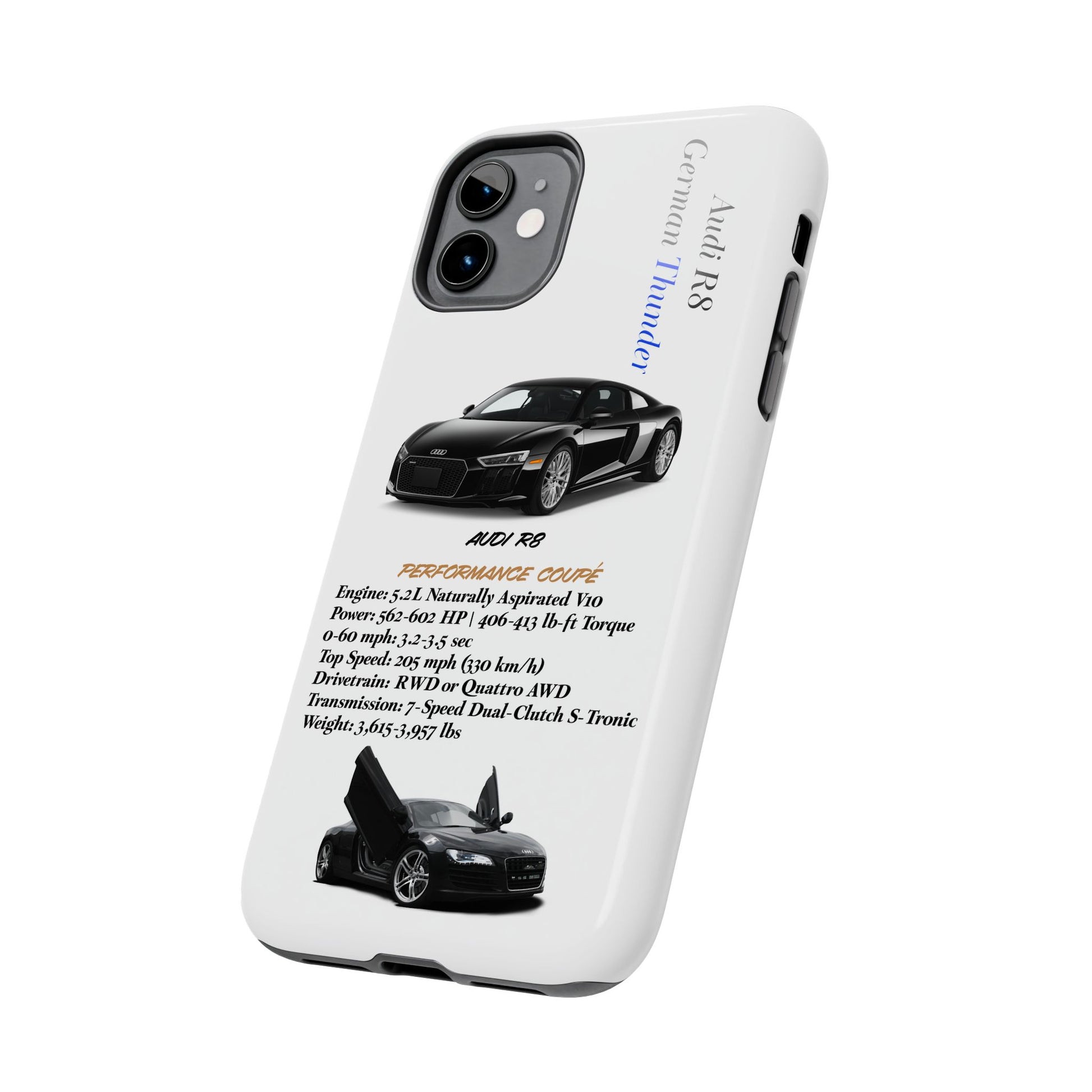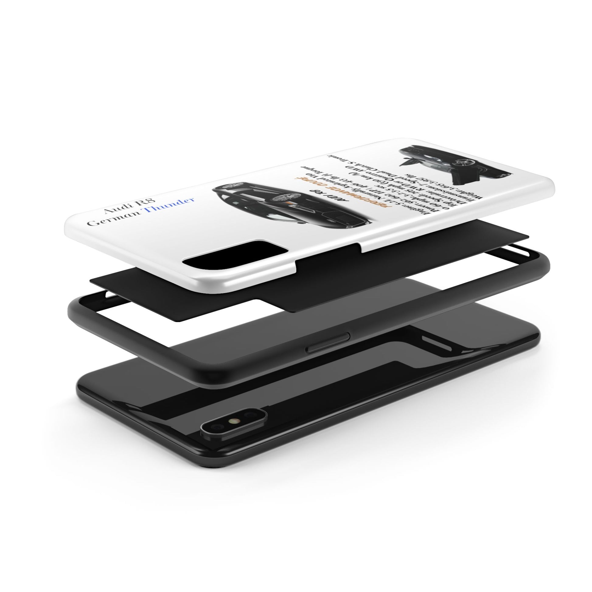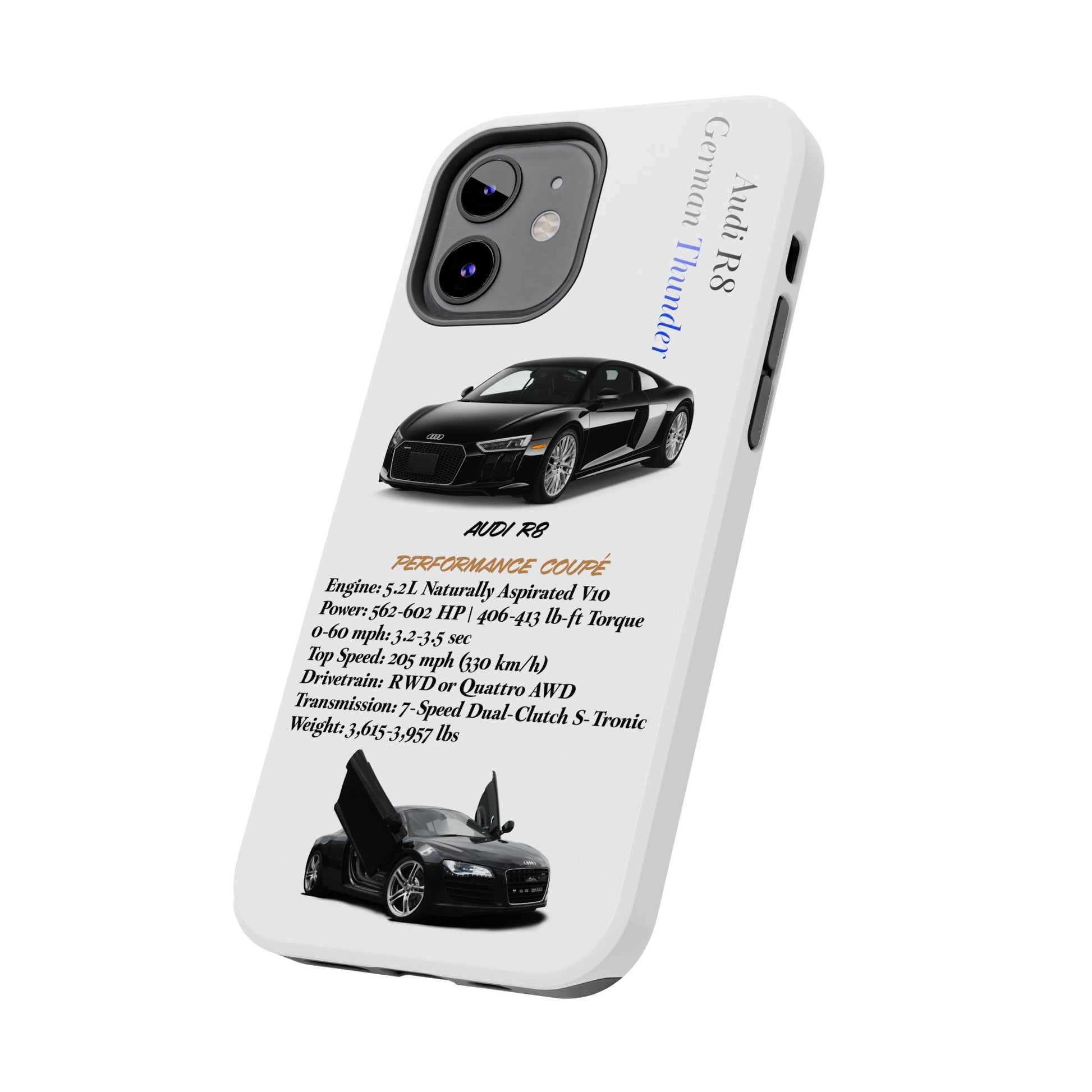 Experience the power and precision of the Audi R8 with this V10 Symphony Edition phone case. Designed for supercar enthusiasts and motorsport fans, this case celebrates the high-revving 5.2L V10 engine, quattro AWD dominance, and track-ready performance of Audi's flagship supercar. Perfect for those who appreciate high-performance vehicles and want to showcase their love for Audi.