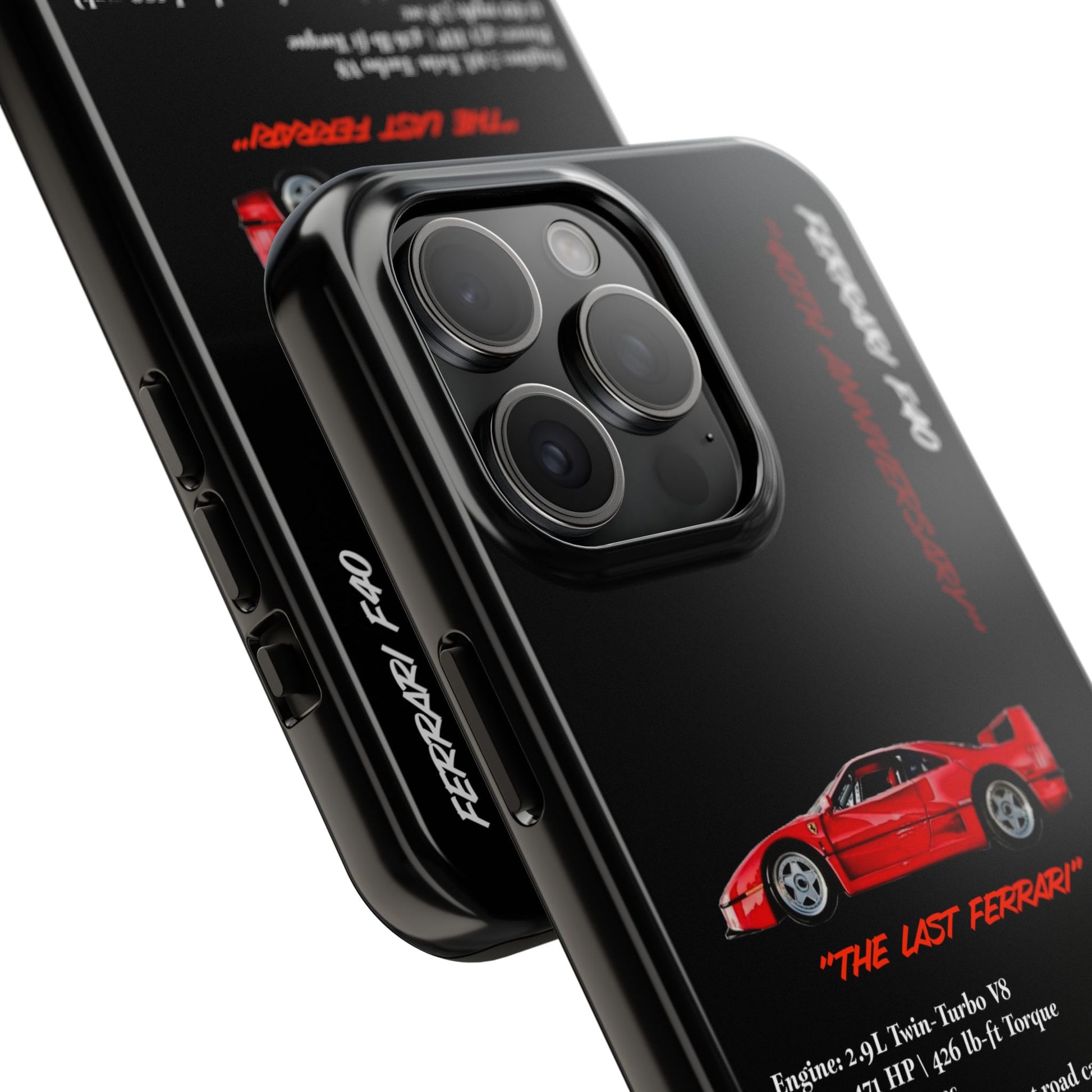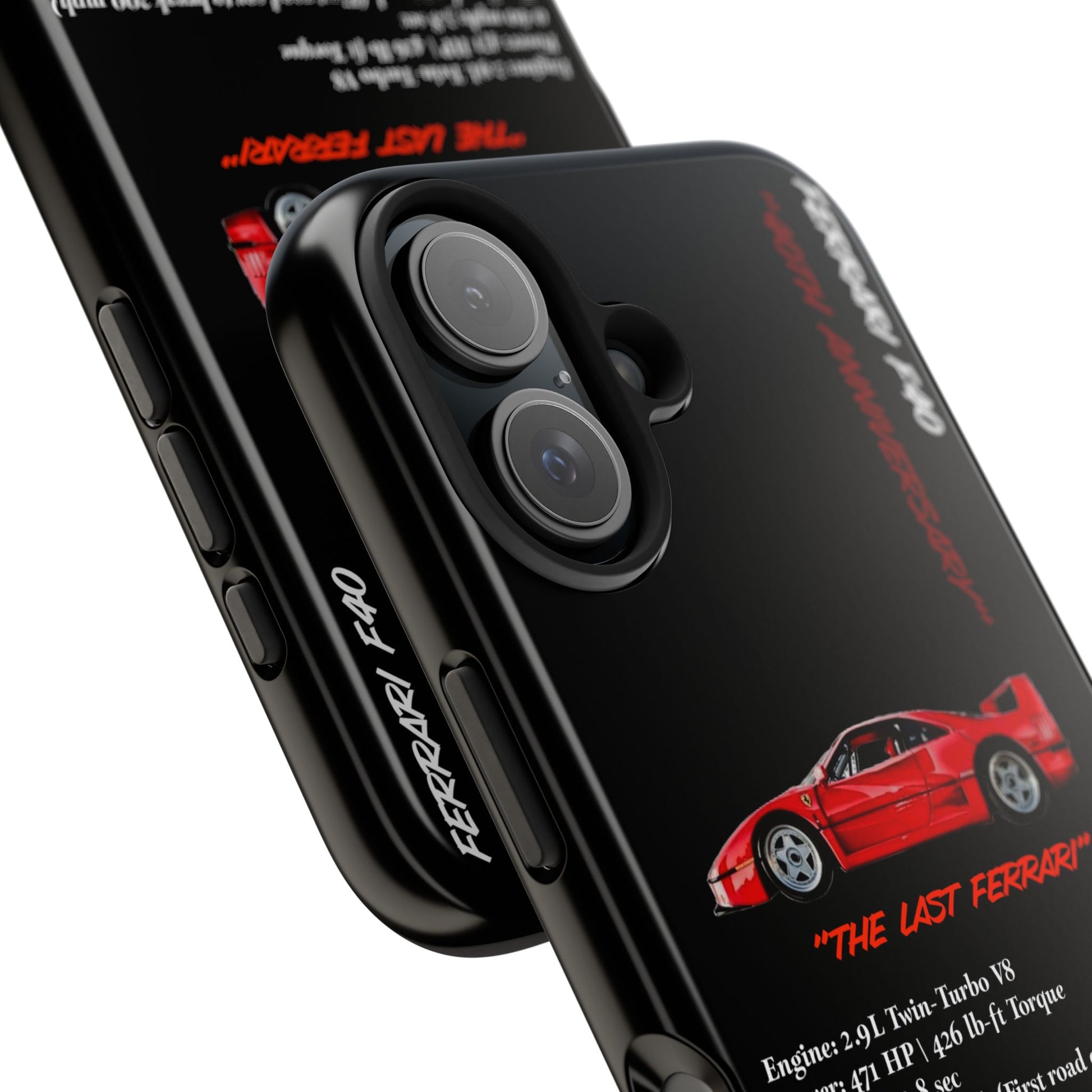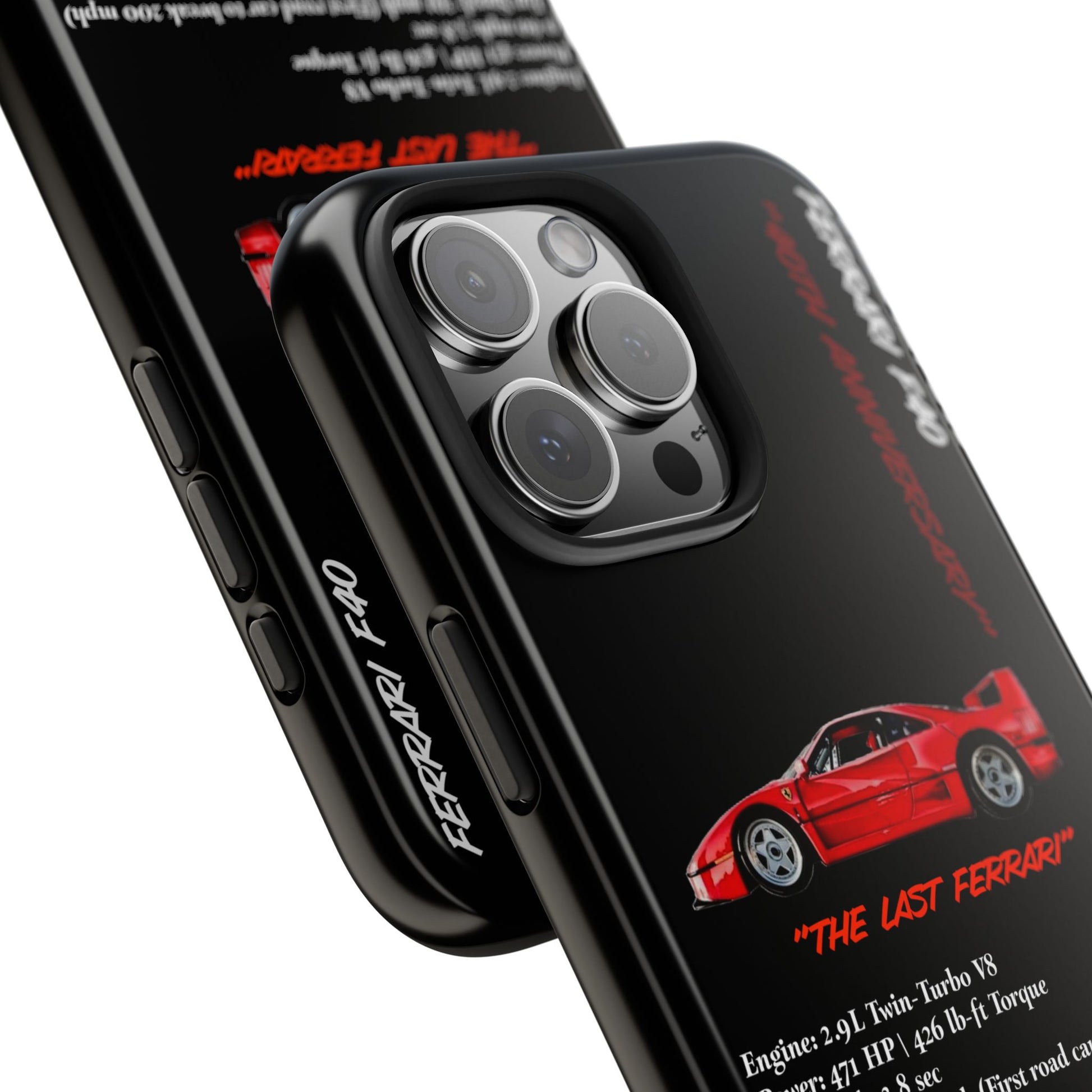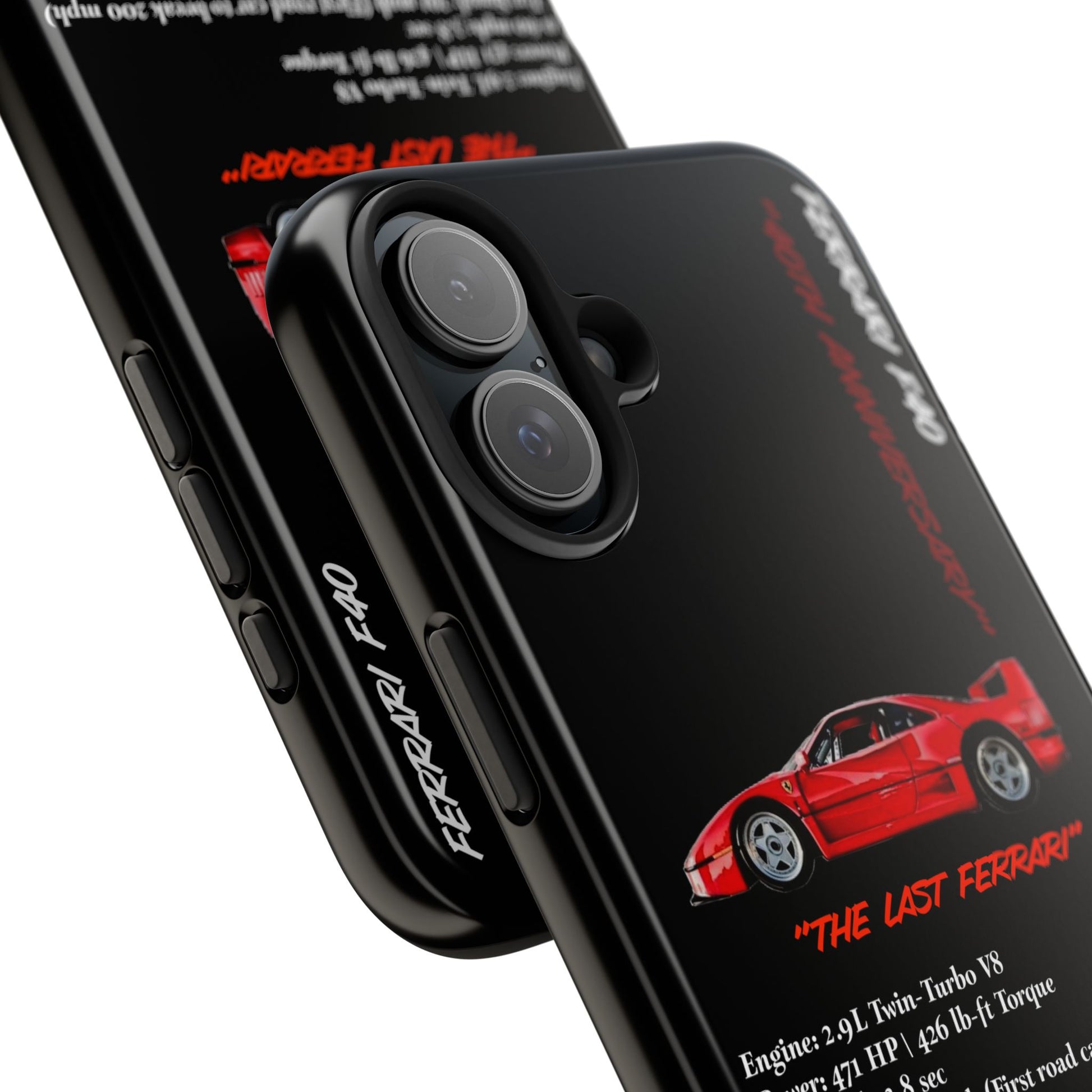 Celebrate the raw power and timeless design of the Ferrari F40 with this Twin-Turbo Legend Edition phone case. Designed for enthusiasts who appreciate lightweight performance, racing heritage, and the last Ferrari personally approved by Enzo Ferrari. Perfect for car enthusiasts and those who love high-performance vehicles. Ideal for gifting on birthdays, Father's Day, and Christmas.